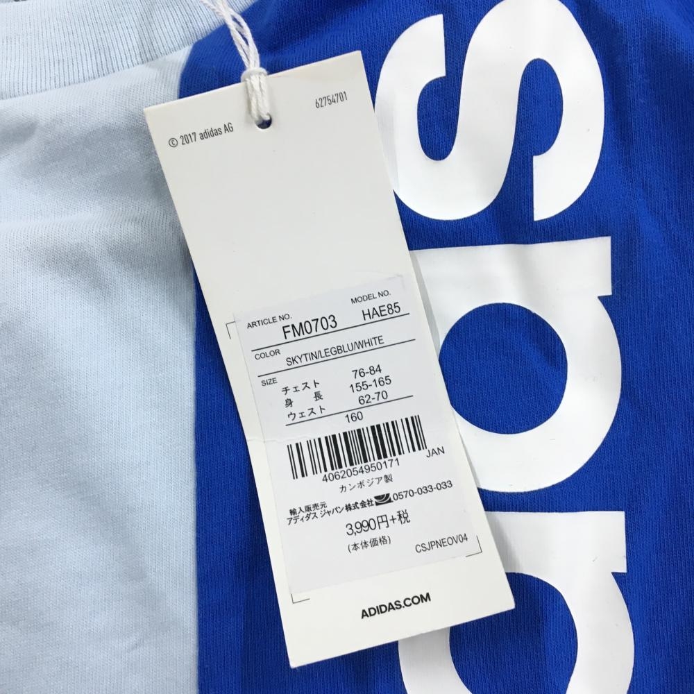 【新品】アディダス Tシャツ上下セット ブルー×ライトブルー ロゴ ハーフパンツ付 レディース 160 ゴルフウェア adidas