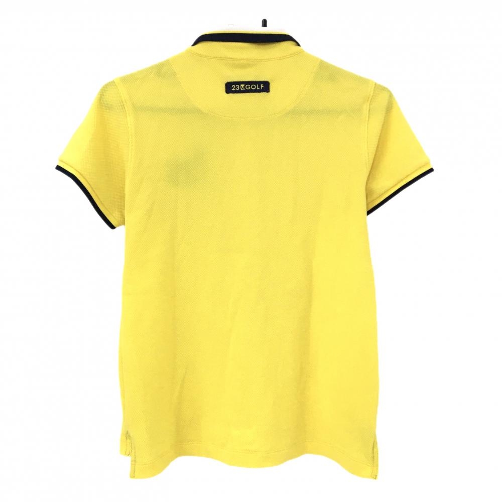 【美品】23区ゴルフ 半袖ポロシャツ イエロー×ネイビー ロゴ刺しゅう レディース I(M) ゴルフウェア 23区