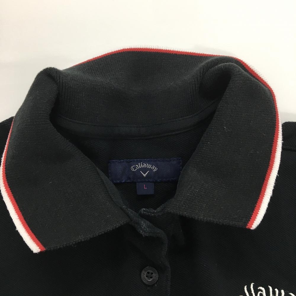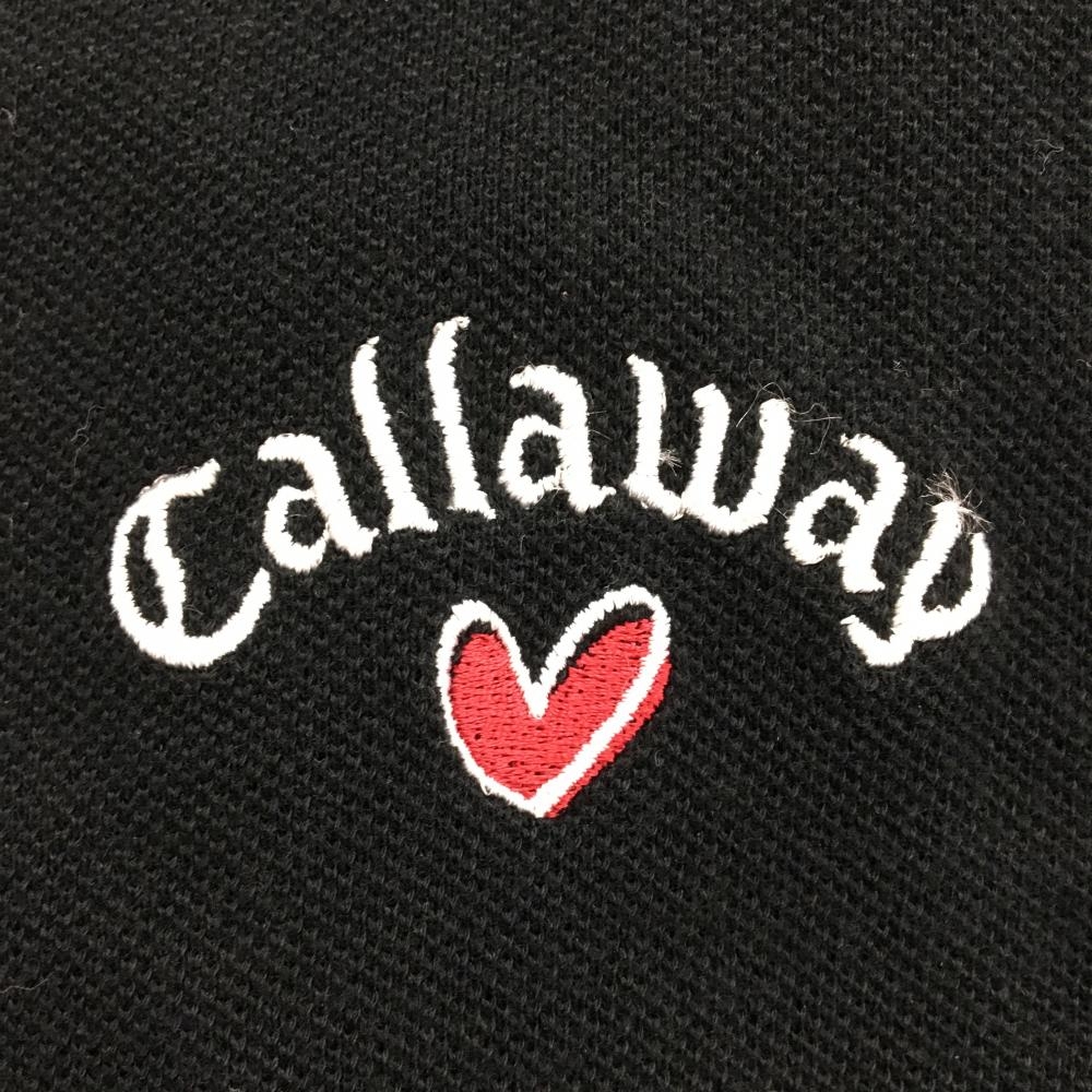 キャロウェイ 半袖ポロシャツ 黒×白×レッド 襟縁ライン ハート刺しゅう レディース L ゴルフウェア Callaway