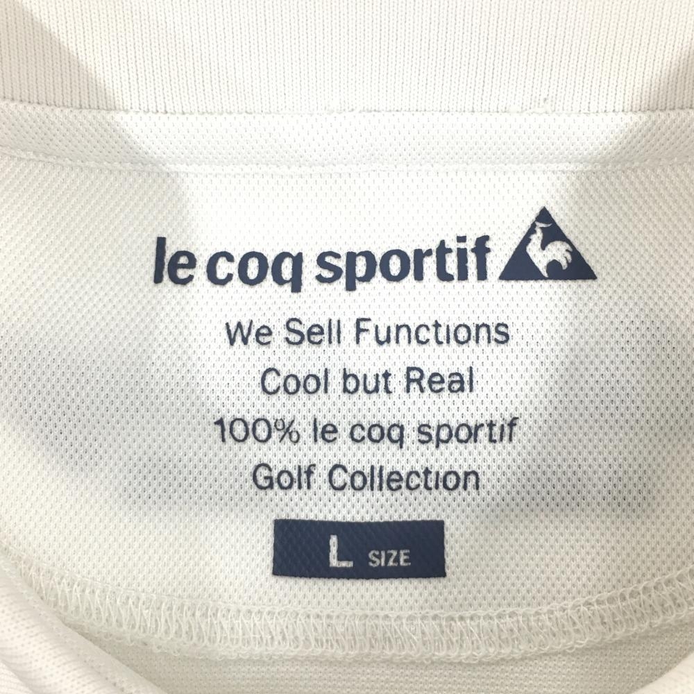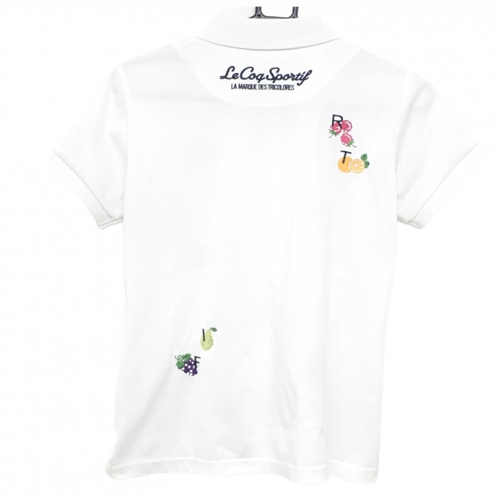 ルコックゴルフ 半袖ポロシャツ 白×マルチカラー 前面フルーツ総柄刺しゅう 英字 レディース L ゴルフウェア le coq sportif