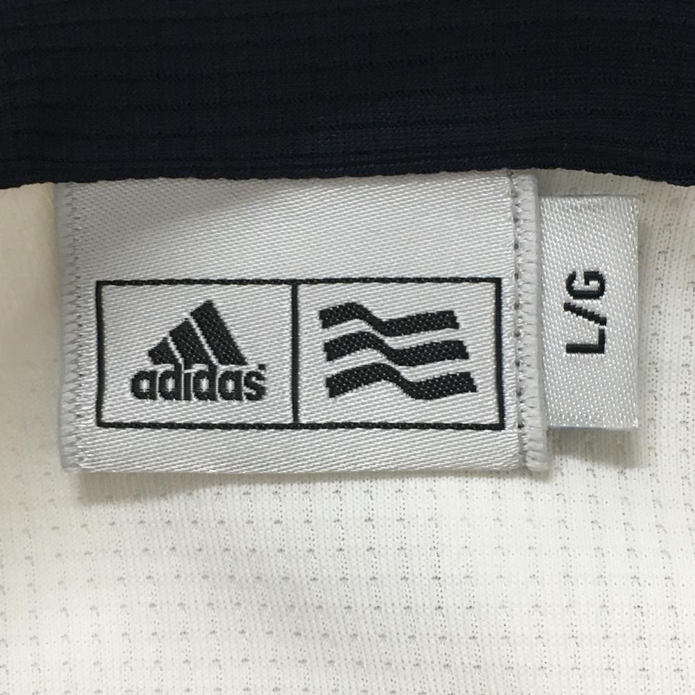 アディダス 半袖ポロシャツ 白×ネイビー ロゴプリント ボタンダウン メンズ L/G ゴルフウェア adidas