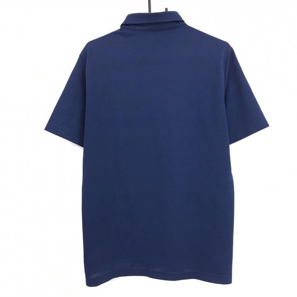 【超美品】アディダス 半袖ポロシャツ ネイビー ボーダー地模様 ロゴ メンズ XO ゴルフウェア adidas