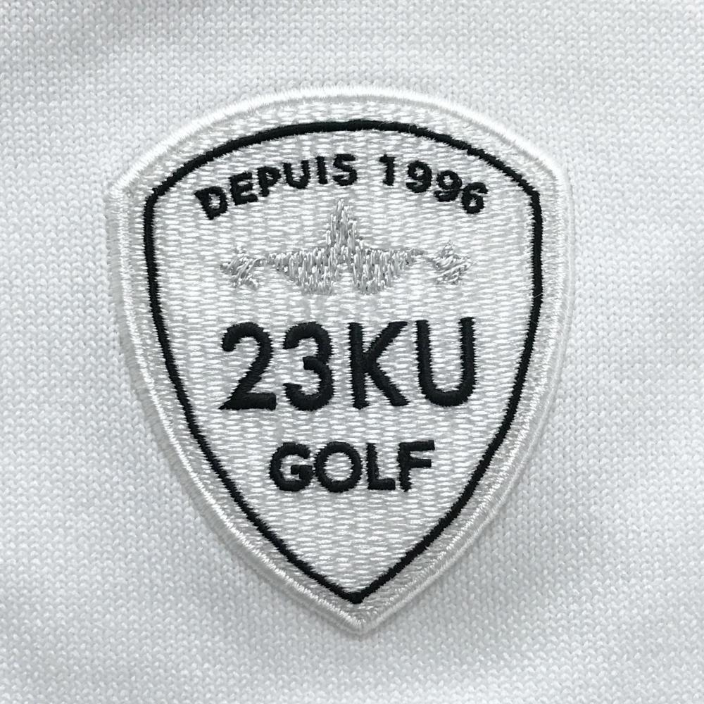 【美品】23区ゴルフ ニットジャケット 白 ロゴワッペン 背面星 ポリエステル100% メンズ M ゴルフウェア 23区