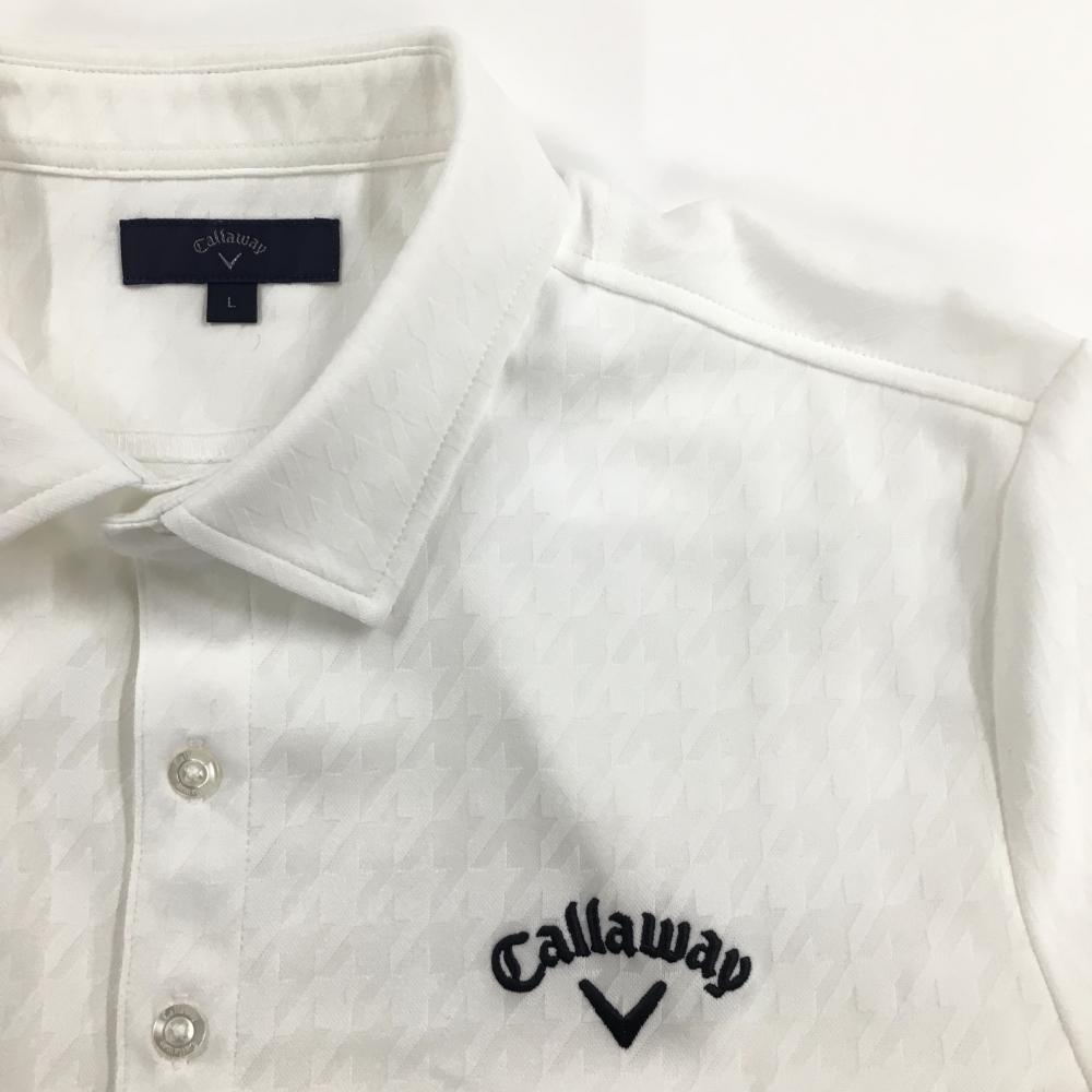 キャロウェイ 半袖ポロシャツ 白 千鳥柄地模様 ロゴ刺しゅう メンズ L ゴルフウェア Callaway