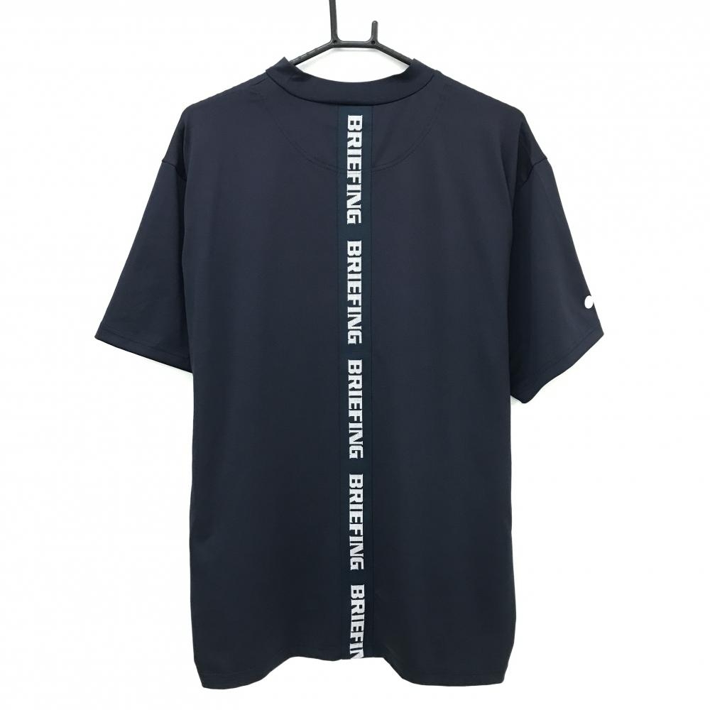 【超美品】ブリーフィング 半袖ハイネックシャツ ネイビー×白 胸ロゴ 後ろロゴライン メンズ L ゴルフウェア BRIEFING