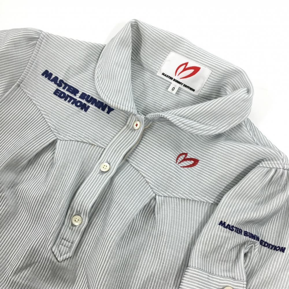 マスターバニー 半袖ポロシャツ ライトグレー×白 細ストライプ 袖下パンチング レディース 0(S) ゴルフウェア MASTER BUNNY EDITION