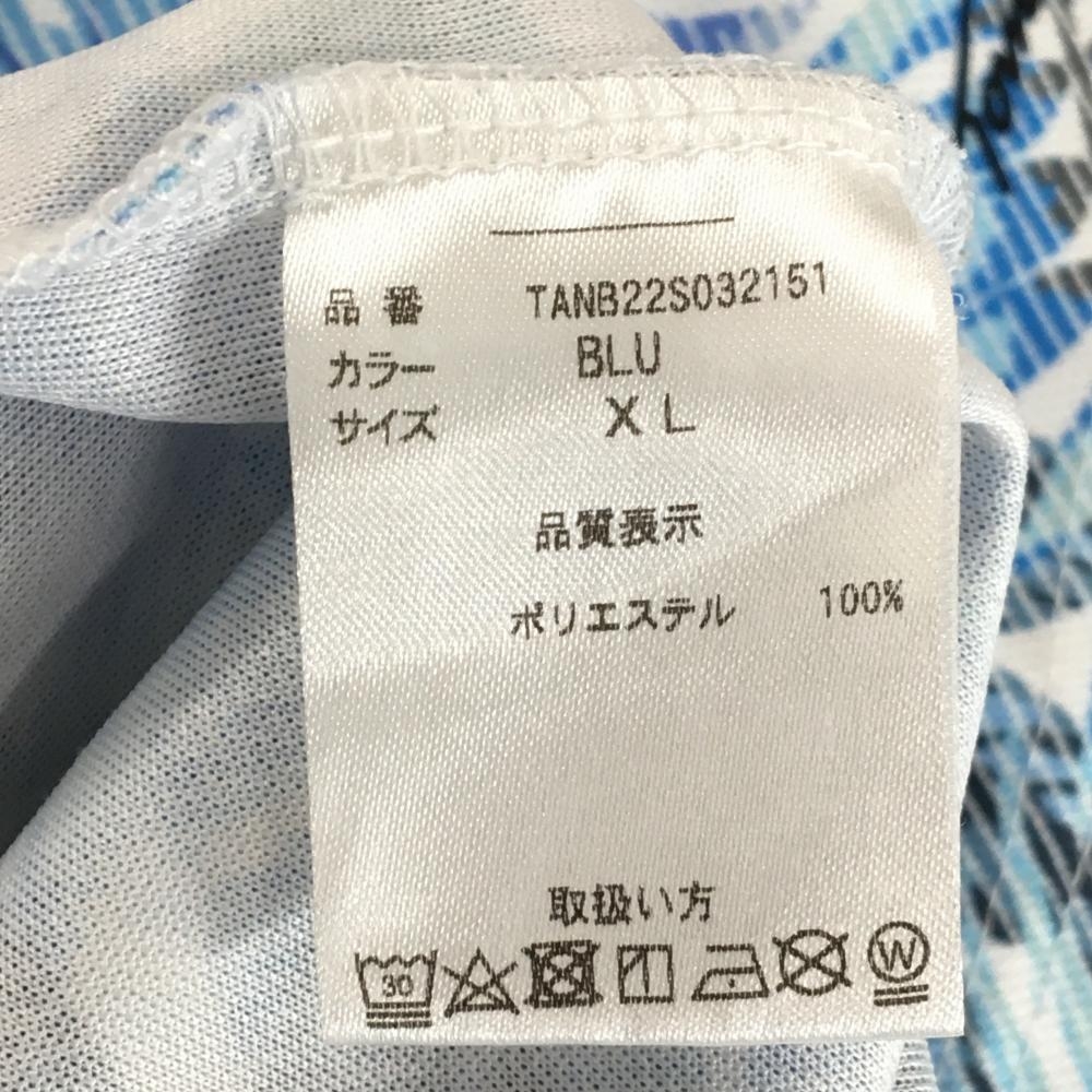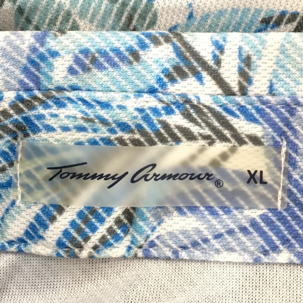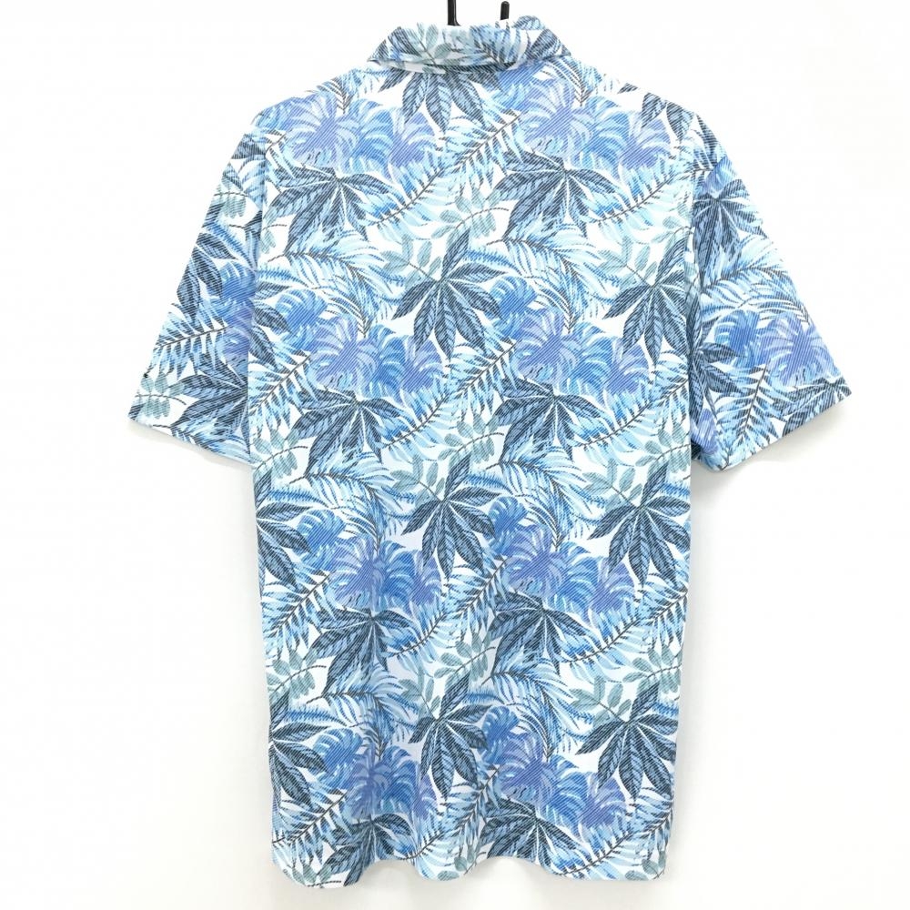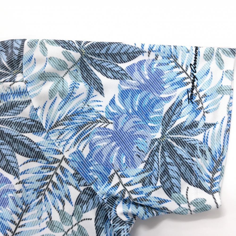 トミーアーマー 半袖ポロシャツ ブルー×白 リーフ柄 メンズ XL ゴルフウェア TommyArmour