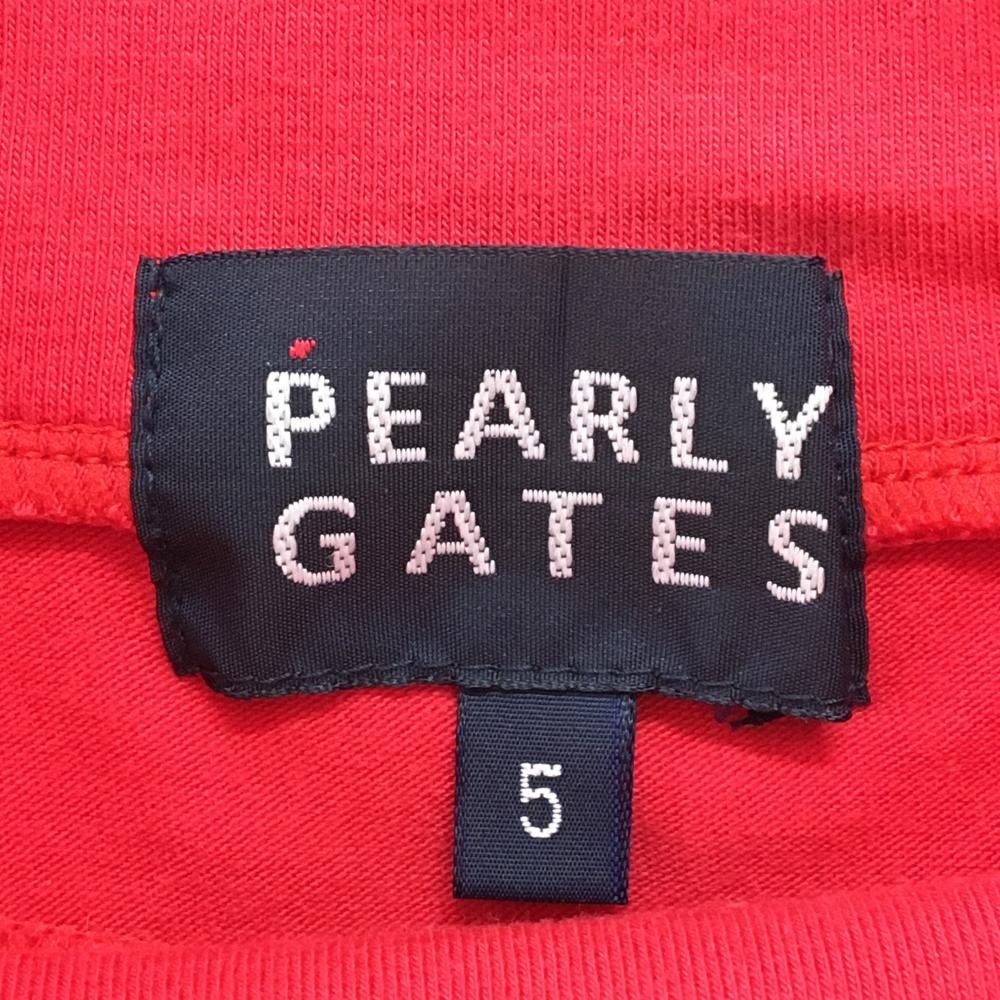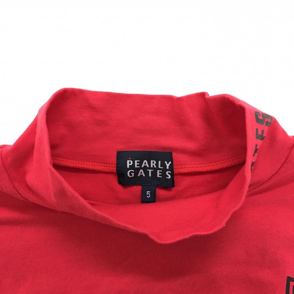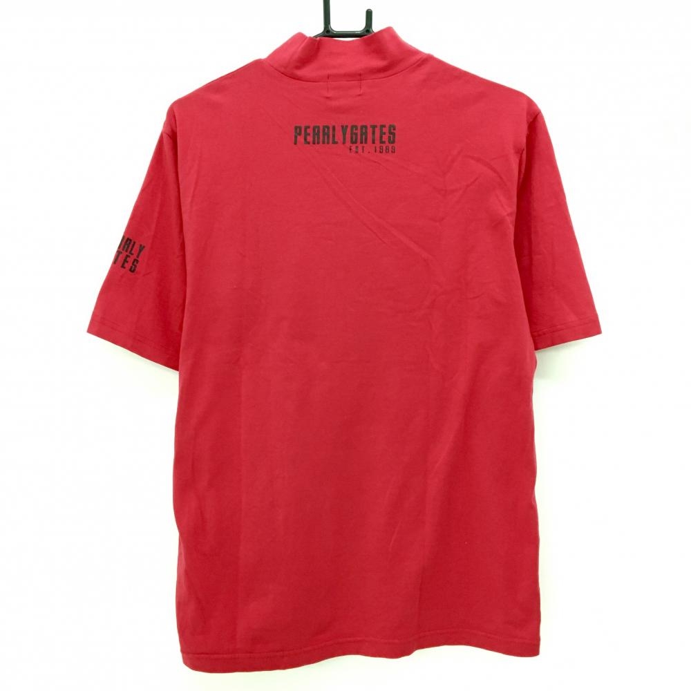 【美品】パーリーゲイツ 半袖ハイネックシャツ レッド×黒 ネックロゴ メンズ 5(L) ゴルフウェア PEARLY GATES