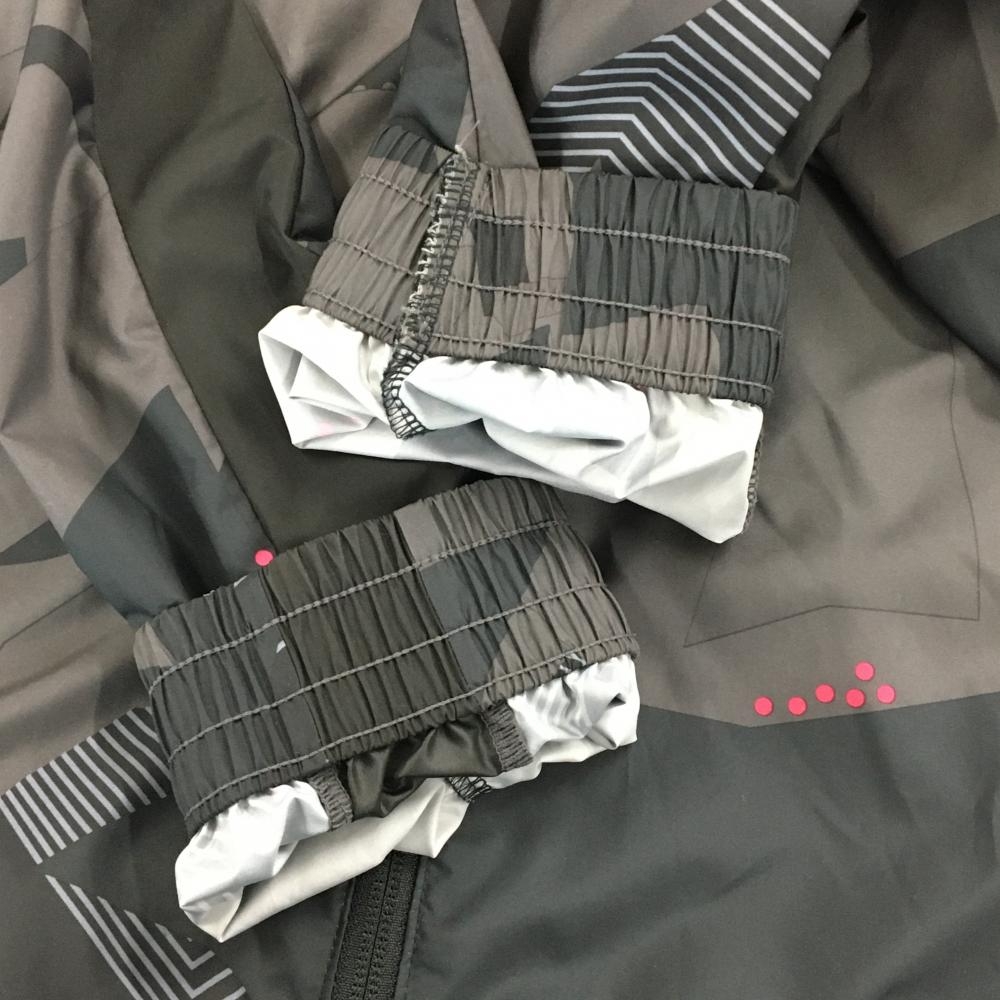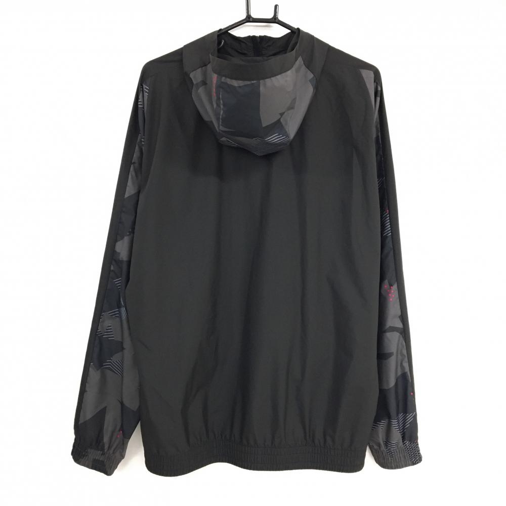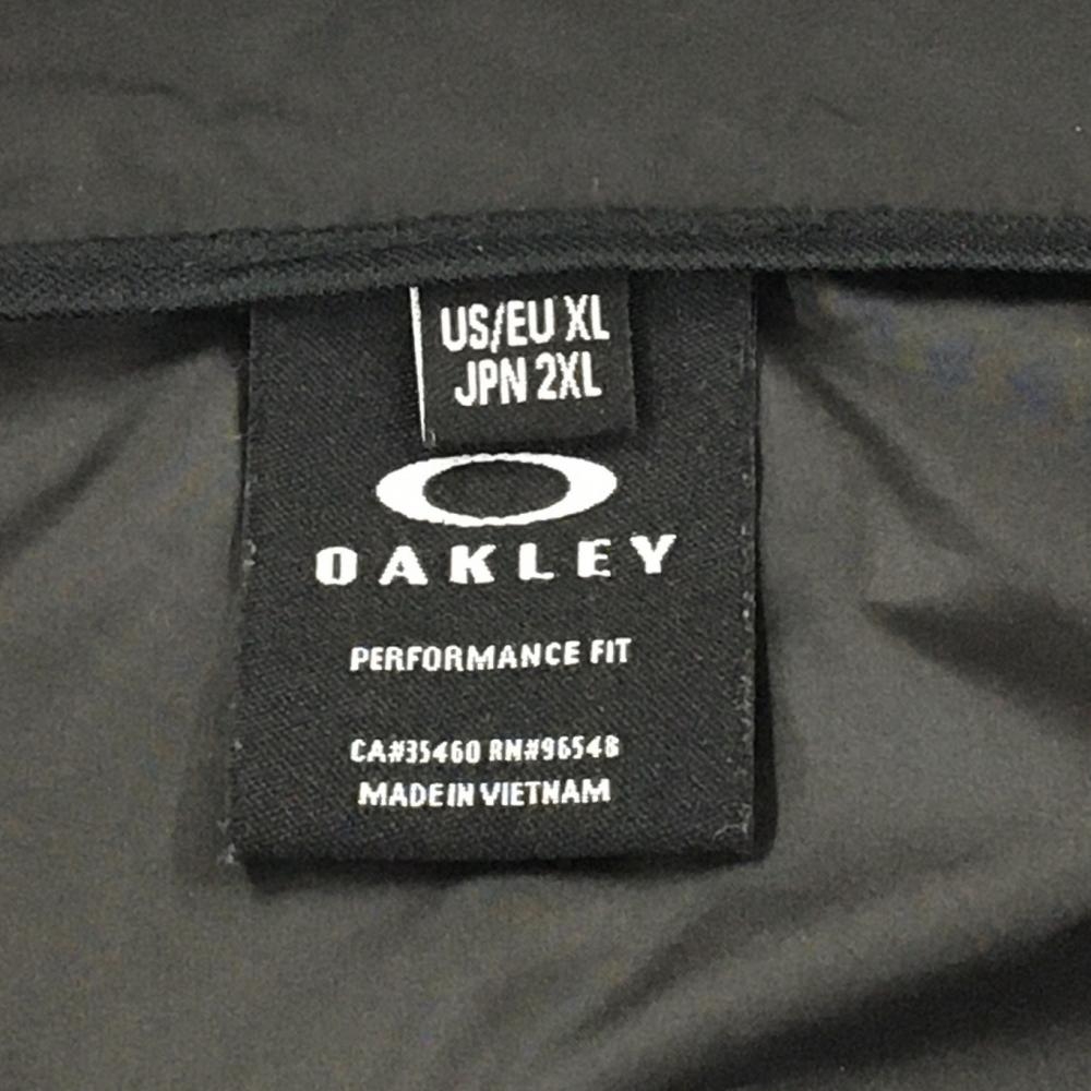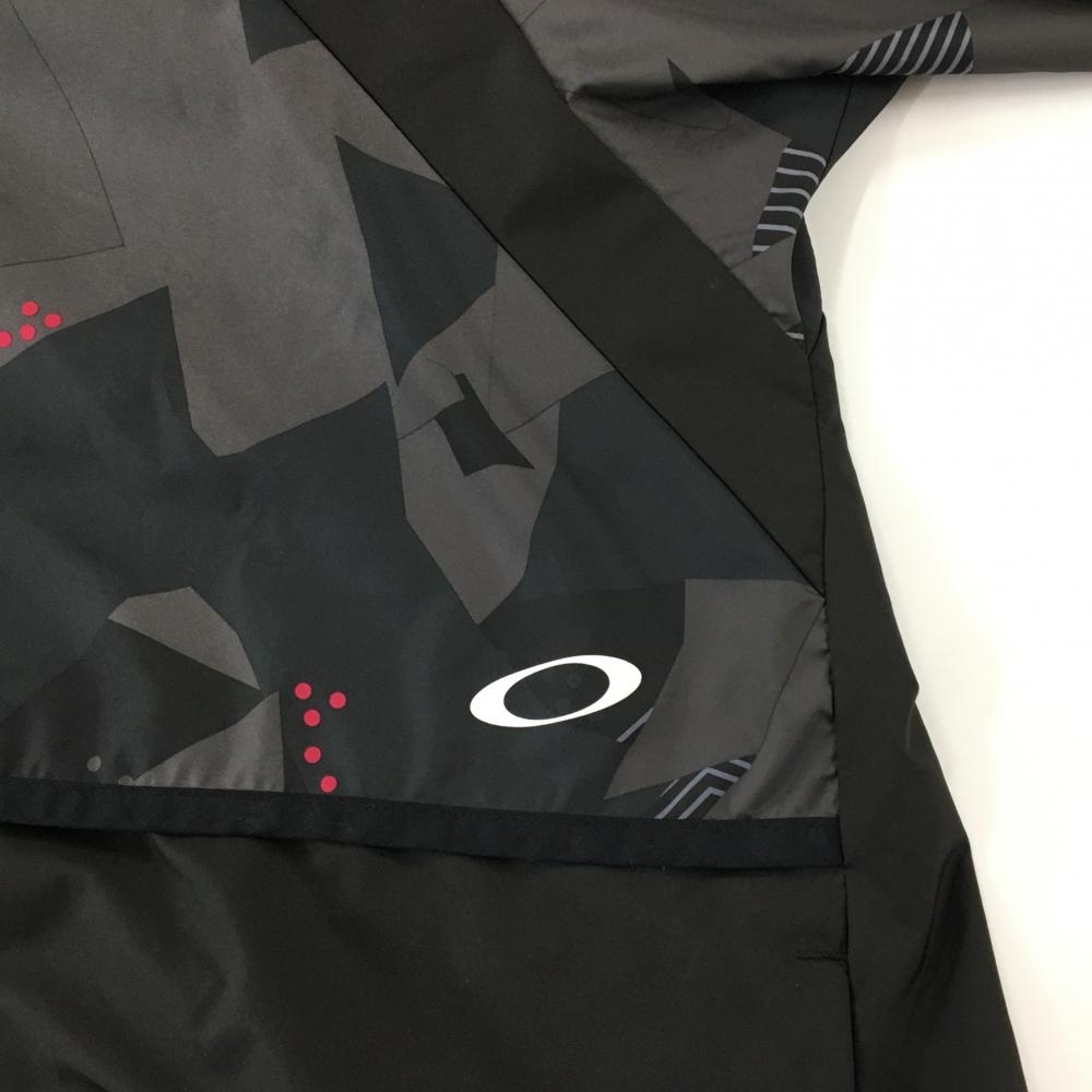 【美品】オークリー フード付ジャケット 黒×ダークグレー 一部総柄 シャカシャカ ロゴプリント メンズ 2XL ゴルフウェア Oakley