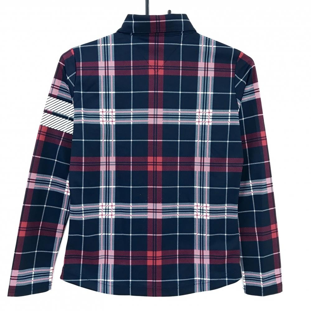 【美品】トミーヒルフィガーゴルフ 長袖ポロシャツ ダークネイビー×レッド×白 レディース S ゴルフウェア Tommy Hilfiger Golf