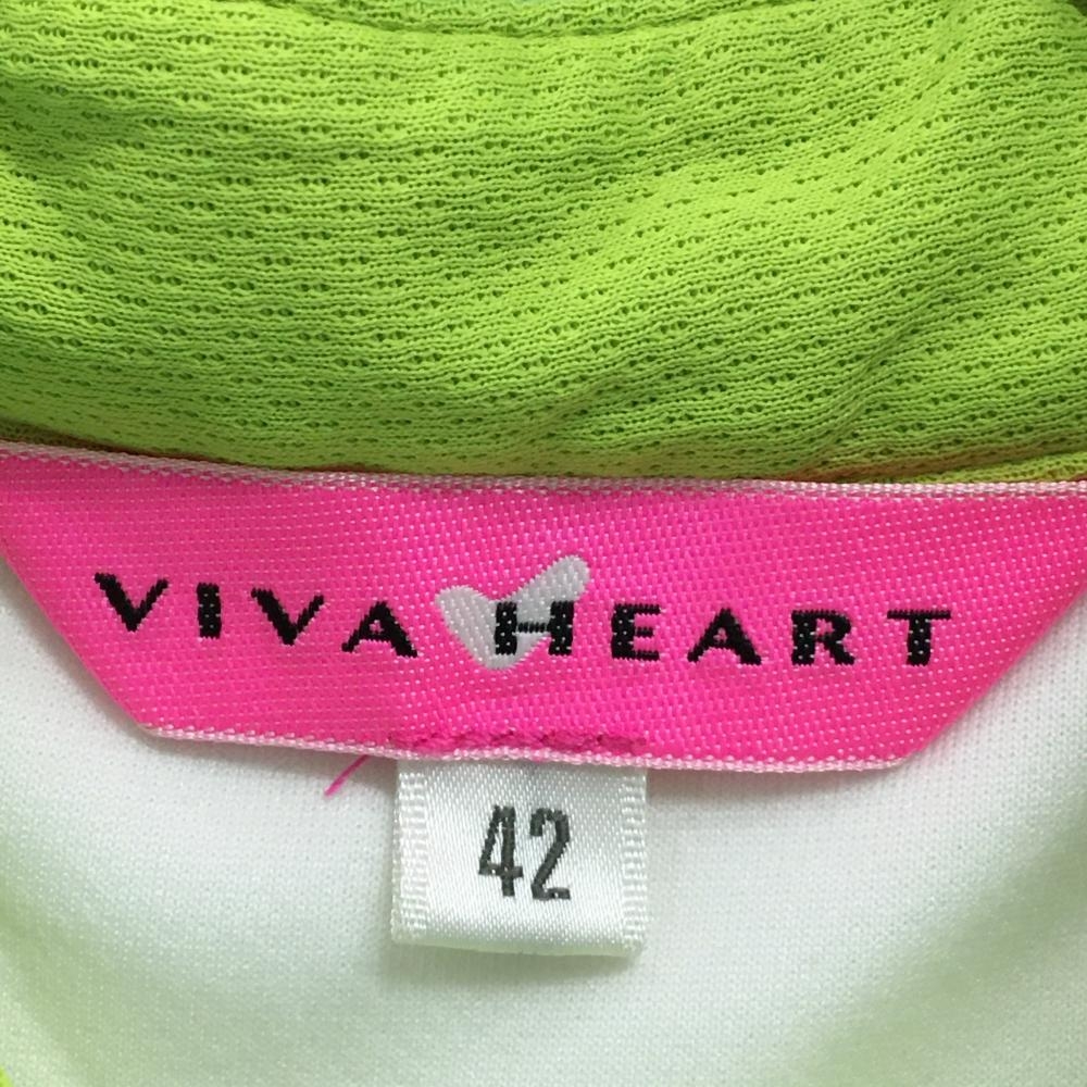 ビバハート 半袖ポロシャツ グリーン系×白 前総柄 重ね着風 レディース 42(L) ゴルフウェア VIVA HEART