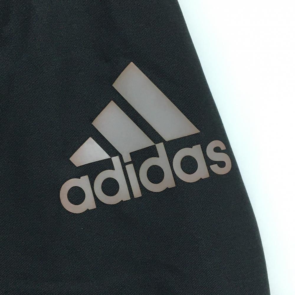 【超美品】アディダス ジャケット 黒×ダークグレー 袖ロゴ 裏微起毛 レディース OT/XG ゴルフウェア adidas