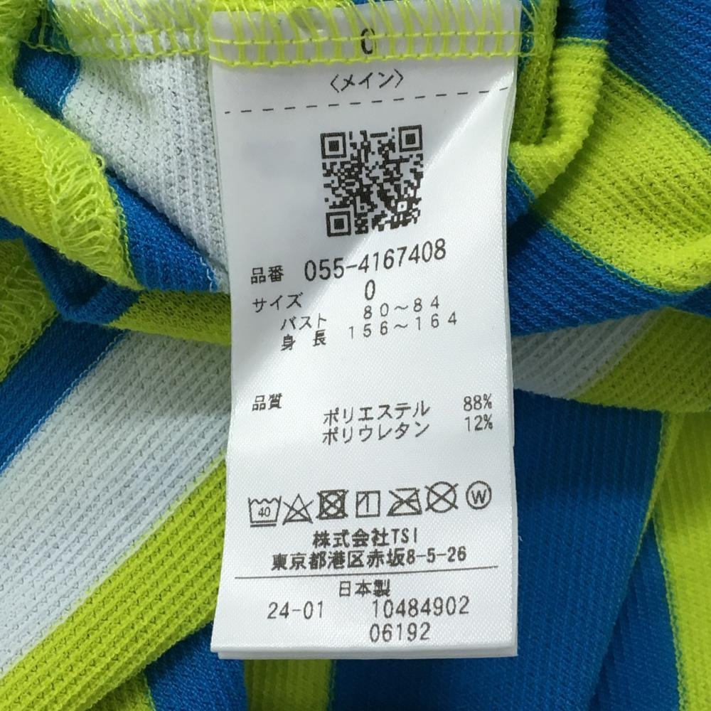 【美品】パーリーゲイツ 半袖ハイネックシャツ ライトグリーン×ブルー レディース 0(S) ゴルフウェア 2024年モデル PEARLY GATES