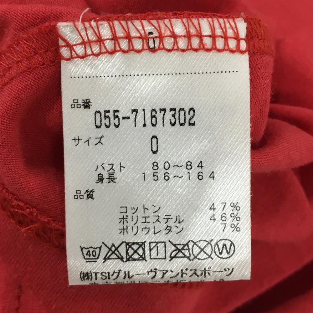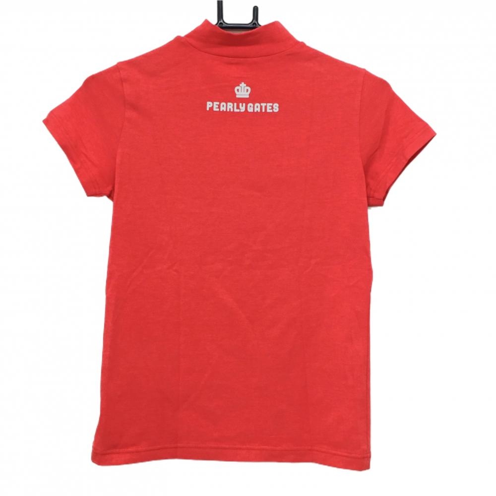 【美品】パーリーゲイツ 半袖ハイネックシャツ レッド ロゴ白 ストレッチ レディース 0(S) ゴルフウェア PEARLY GATES