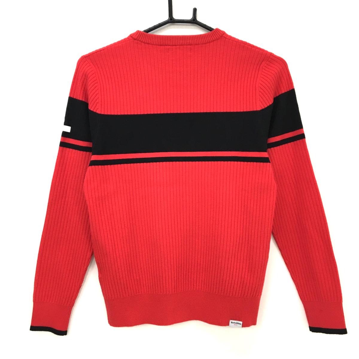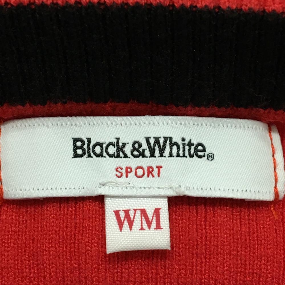 【美品】ブラックアンドホワイト セーター レッド×黒 リブ織 フロントロゴ ニット レディース WM(M) ゴルフウェア Black&White