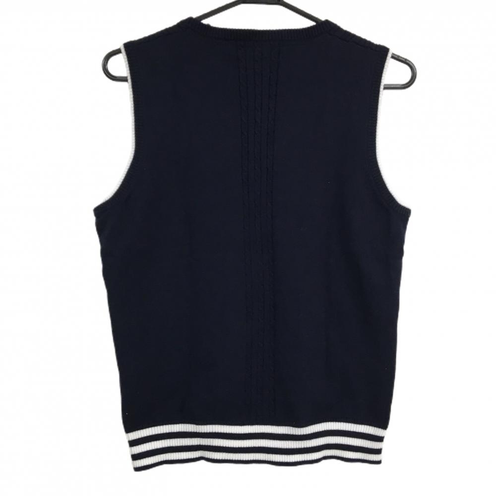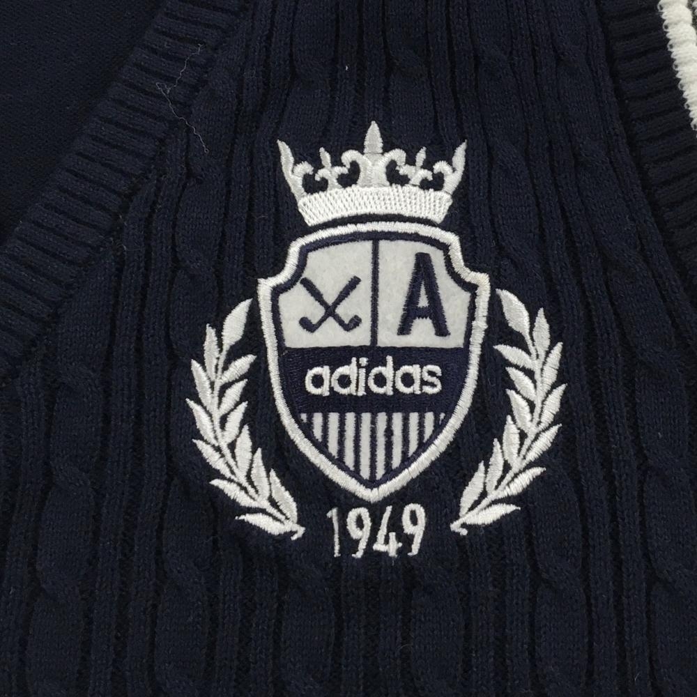 【超美品】アディダス ニットベスト ネイビー×白 ケーブル編み Vネック 綿100% ロゴ刺しゅう レディース L/G(L) ゴルフウェア adidas