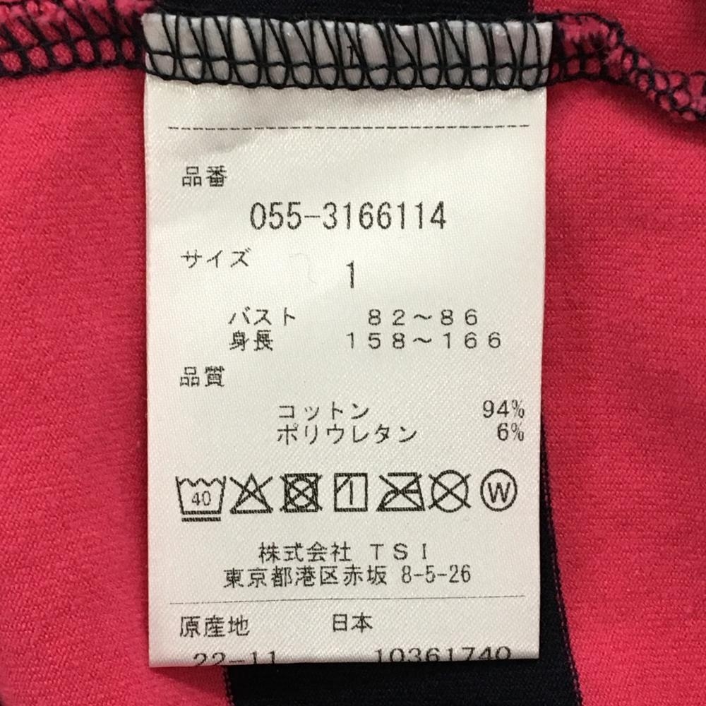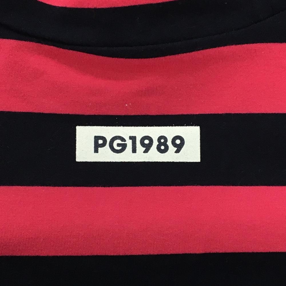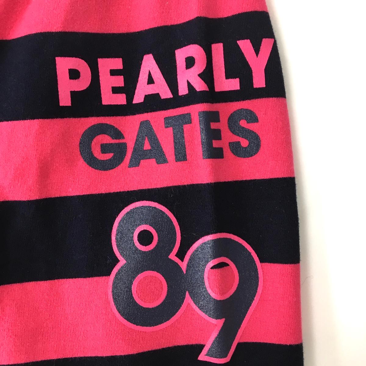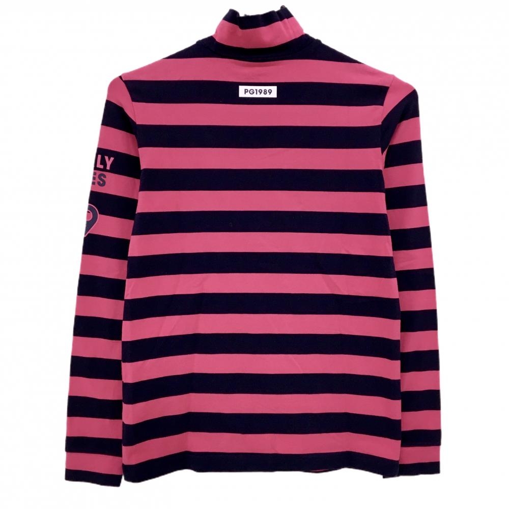 【美品】パーリーゲイツ 長袖ハイネックシャツ ピンク×黒 ボーダー コットン混 レディース 1(M) ゴルフウェア PEARLY GATES