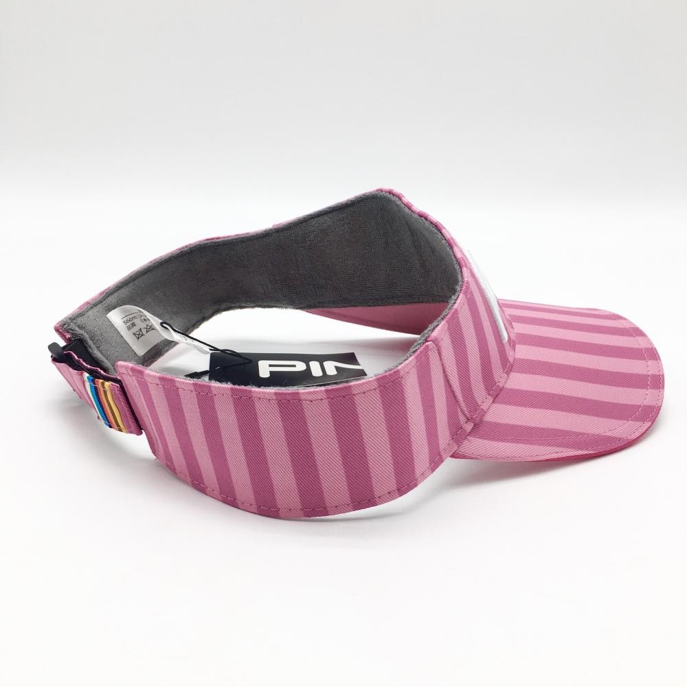 【新品】ピン サンバイザー ピンク ストライプ ロゴ刺しゅう 56cm フリー ゴルフウェア PING