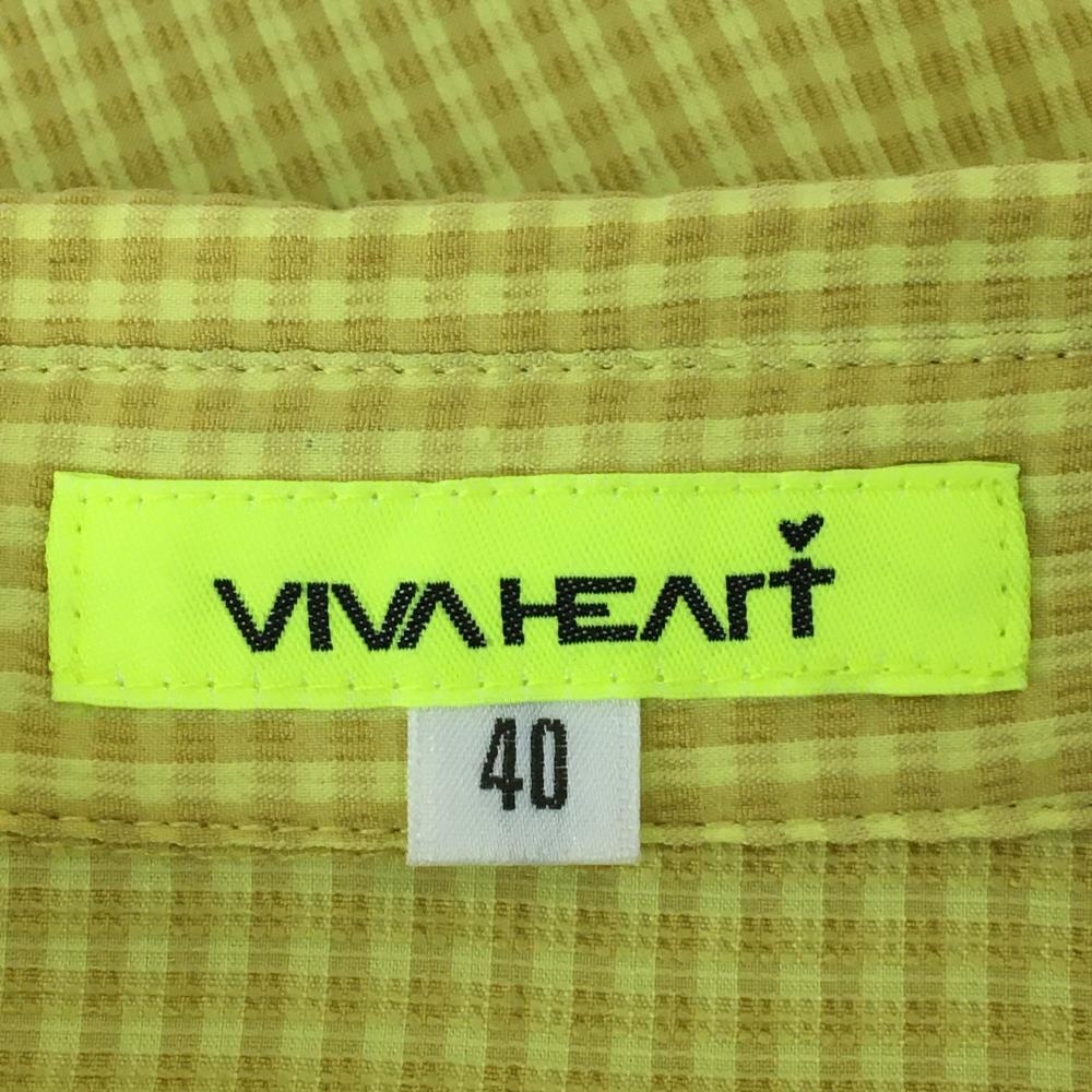 【超美品】ビバハート 半袖ポロワンピース イエロー系×ネイビー チェック柄 胸ポケット レディース 40(M) ゴルフウェア VIVA HEART