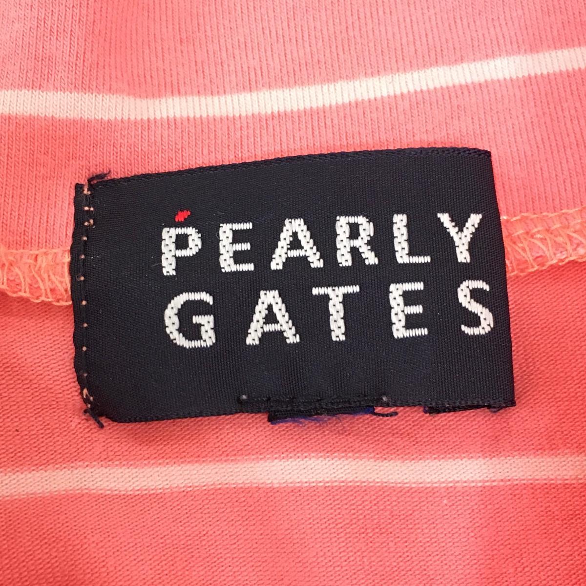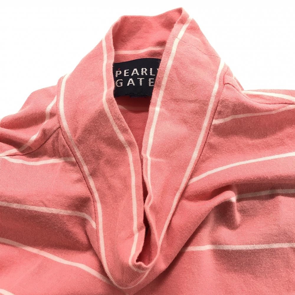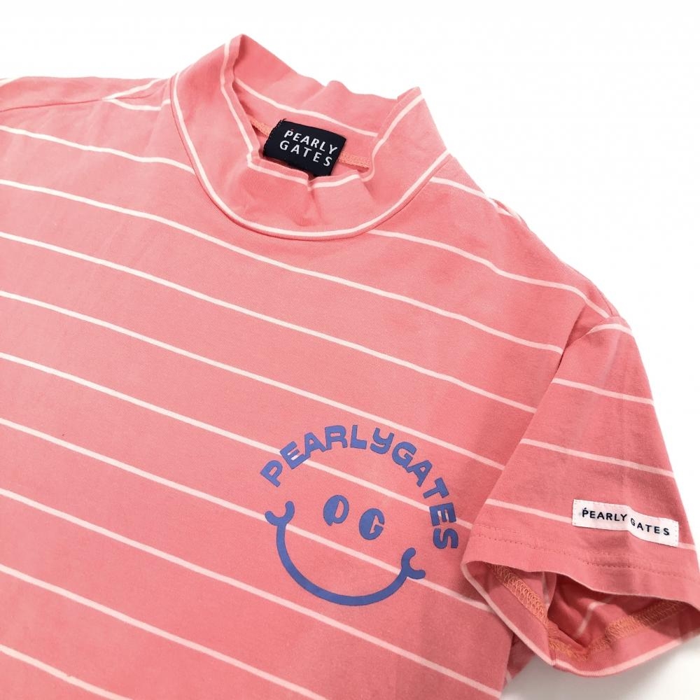 パーリーゲイツ 半袖ハイネックシャツ ピンク×白 ボーダー ニコちゃん スマイル レディース 0(S) ゴルフウェア PEARLY GATES