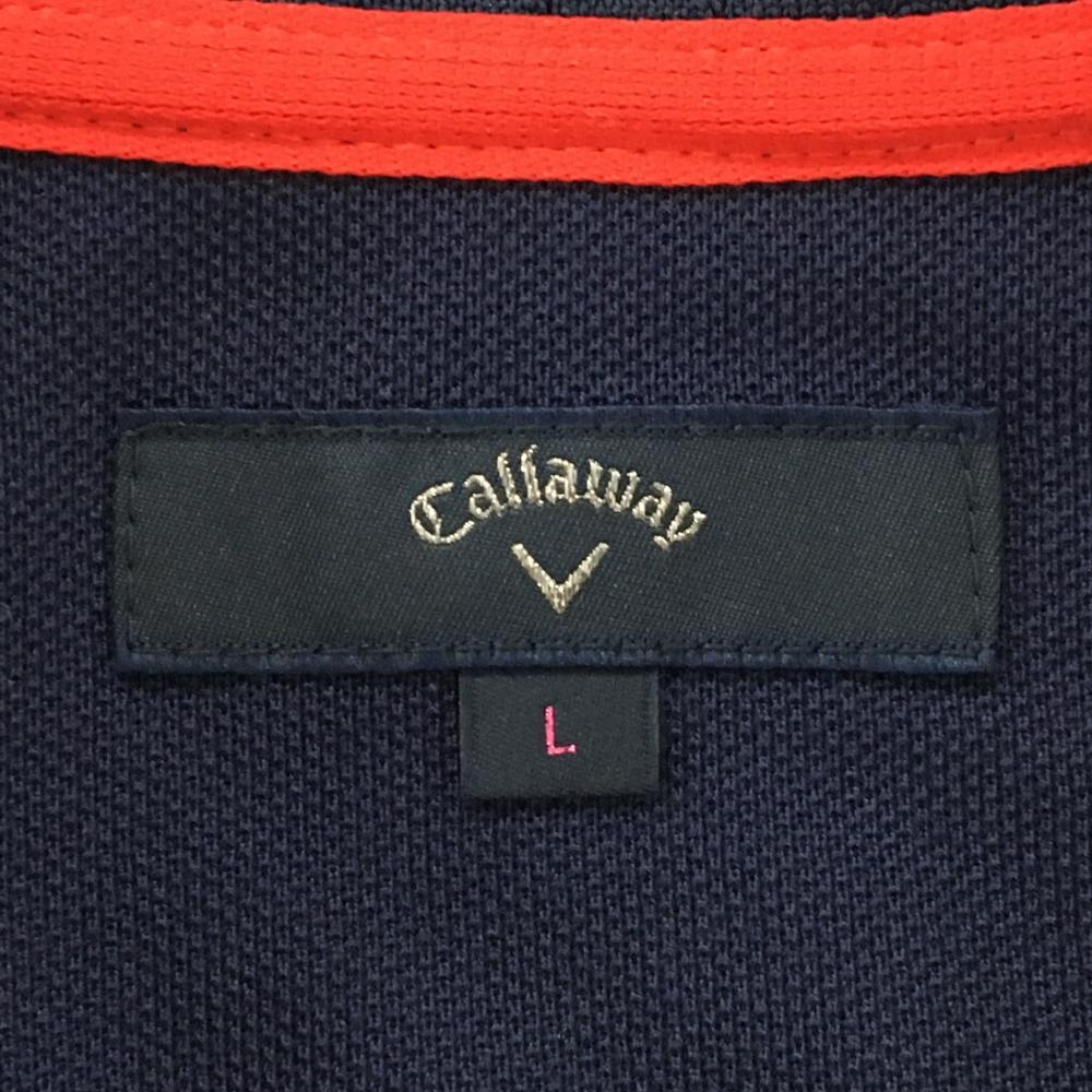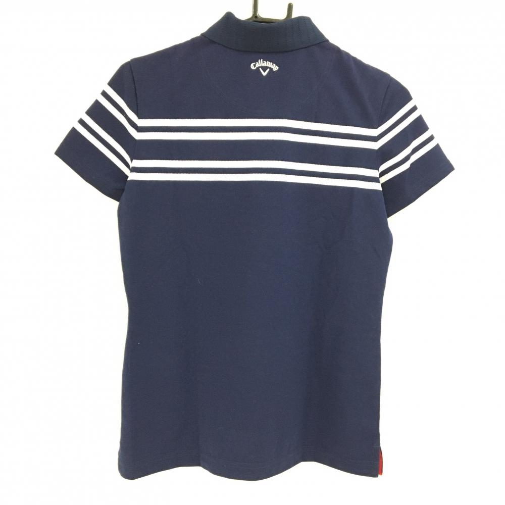 【超美品】キャロウェイ 半袖ポロシャツ ネイビー×白 上部ボーダー 襟ストライプメッシュ レディース L ゴルフウェア Callaway