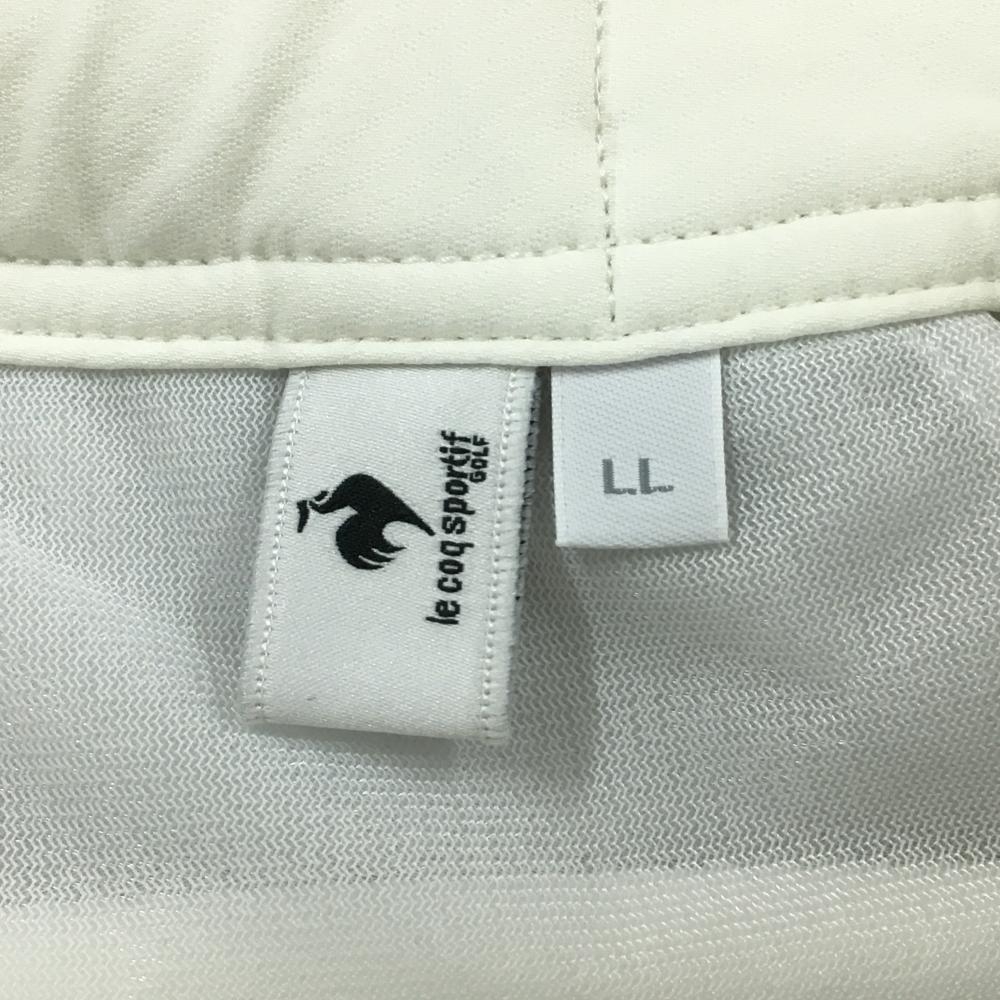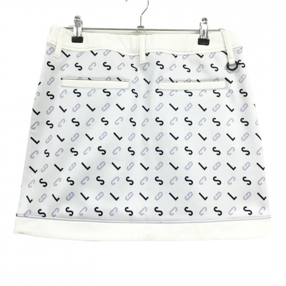 【超美品】ルコックゴルフ スカート ライトグレー系×パープル 英字総柄 裏起毛 レディース LL ゴルフウェア le coq sportif
