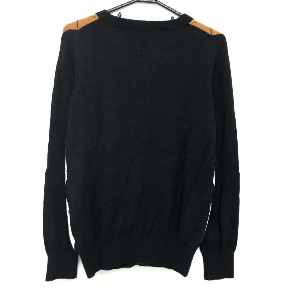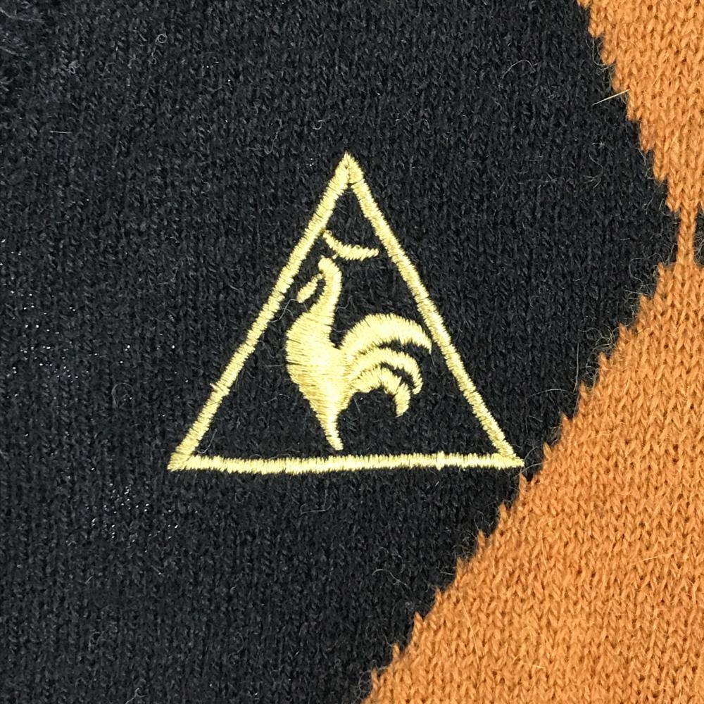 【美品】ルコックゴルフ ニットカーディガン 黒×白×ブラウン 前面アーガイル柄 ウール混 レディース L ゴルフウェア le coq sportif