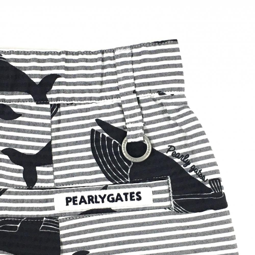 【新品】パーリーゲイツ スカート 白×グレー×黒 総柄 イルカ クジラ ボーダー レディース 1(M) ゴルフウェア PEARLY GATES