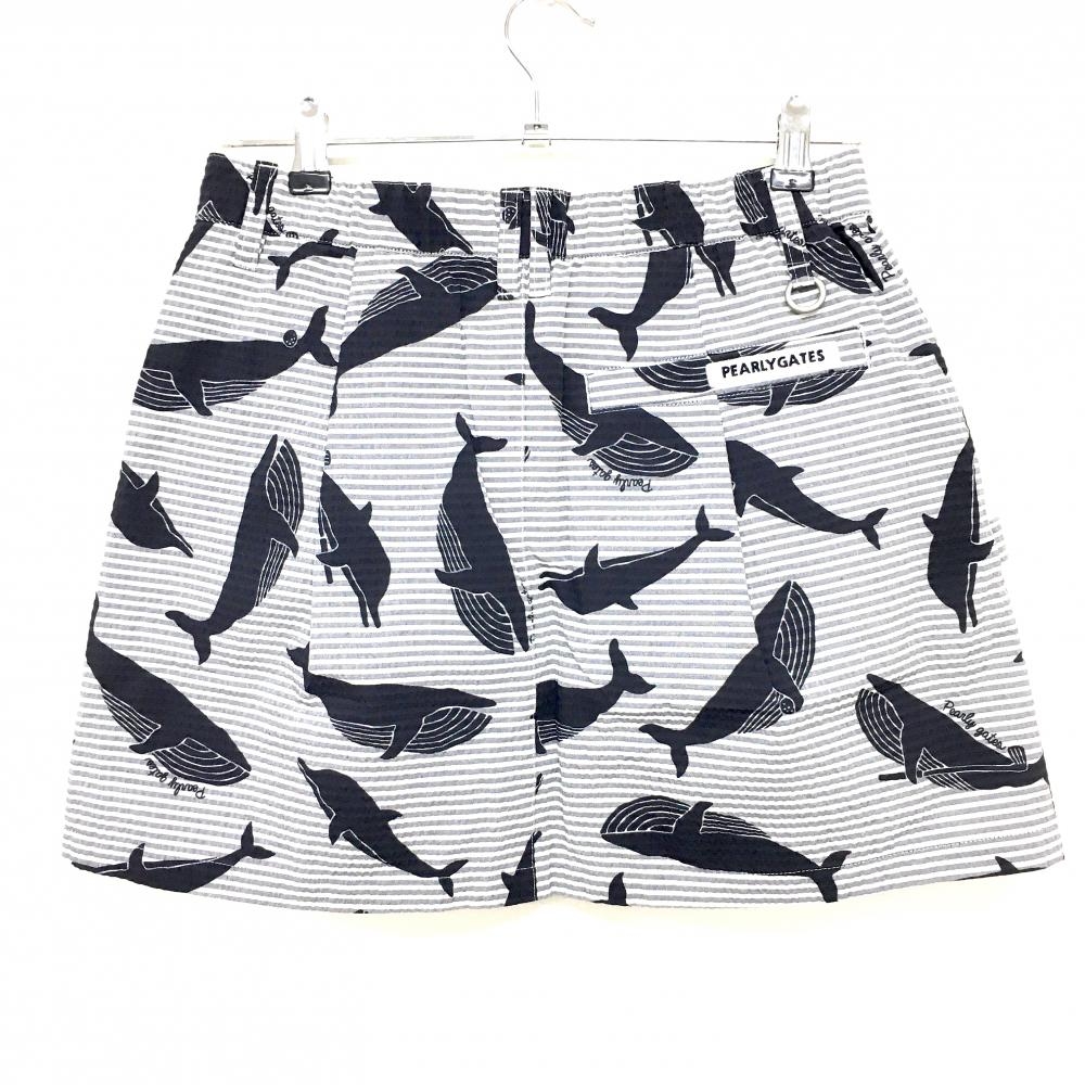 【新品】パーリーゲイツ スカート 白×グレー×黒 総柄 イルカ クジラ ボーダー レディース 1(M) ゴルフウェア PEARLY GATES