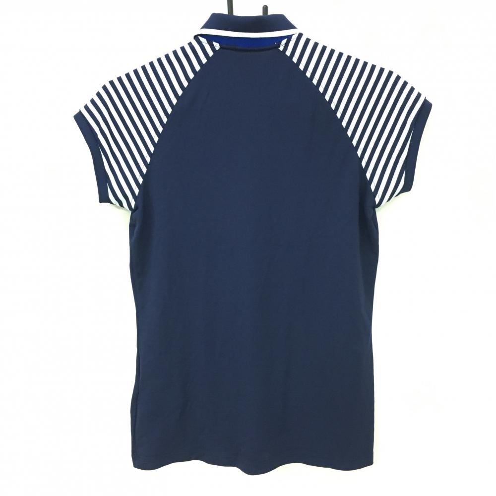 【美品】RLXラルフローレン 半袖ポロシャツ ネイビー×白 袖ボーダー スナップボタン レディース S ゴルフウェア Ralph Lauren