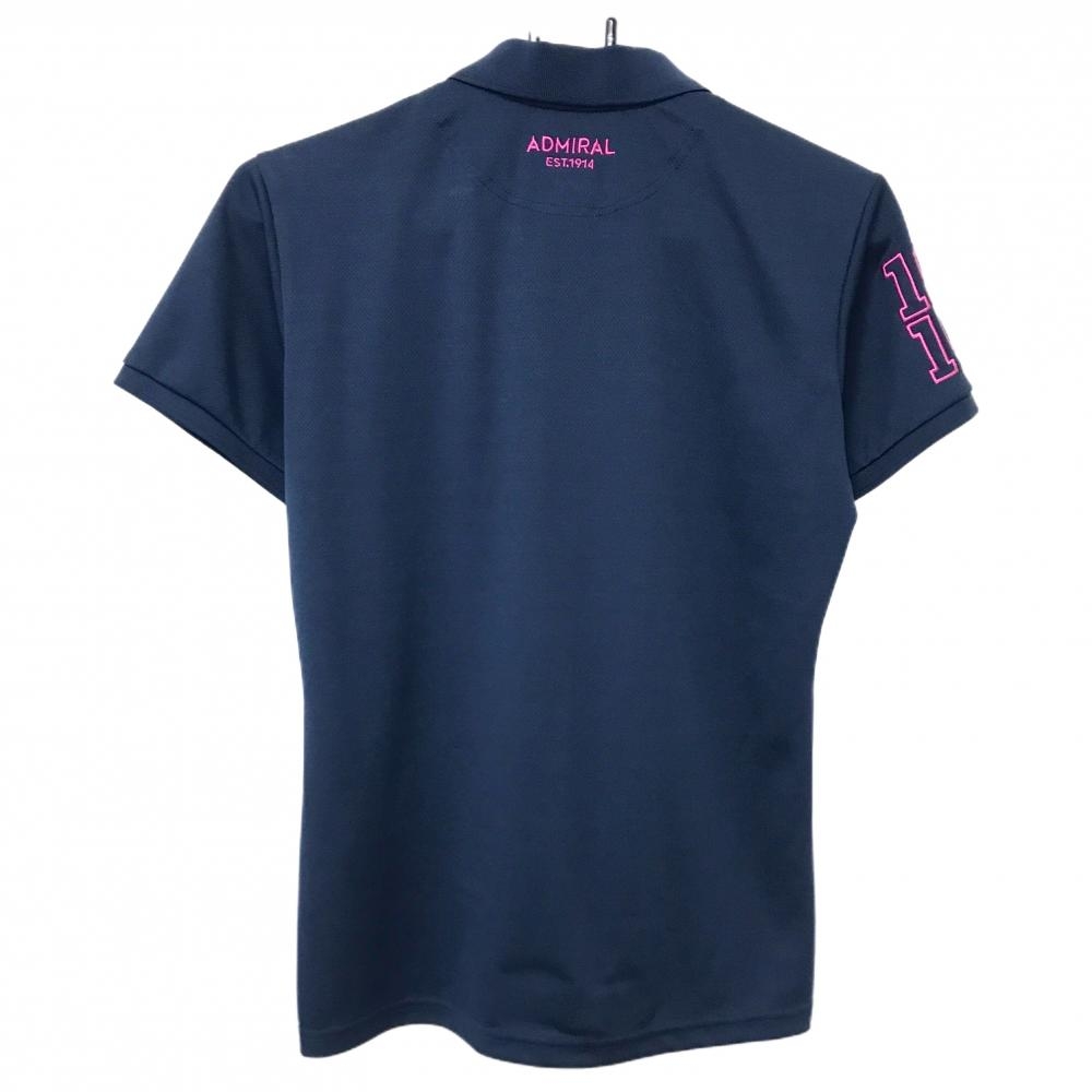 【超美品】アドミラル 半袖ポロシャツ ネイビー ビッグロゴピンク ENGLAND刺しゅう レディース L ゴルフウェア Admiral