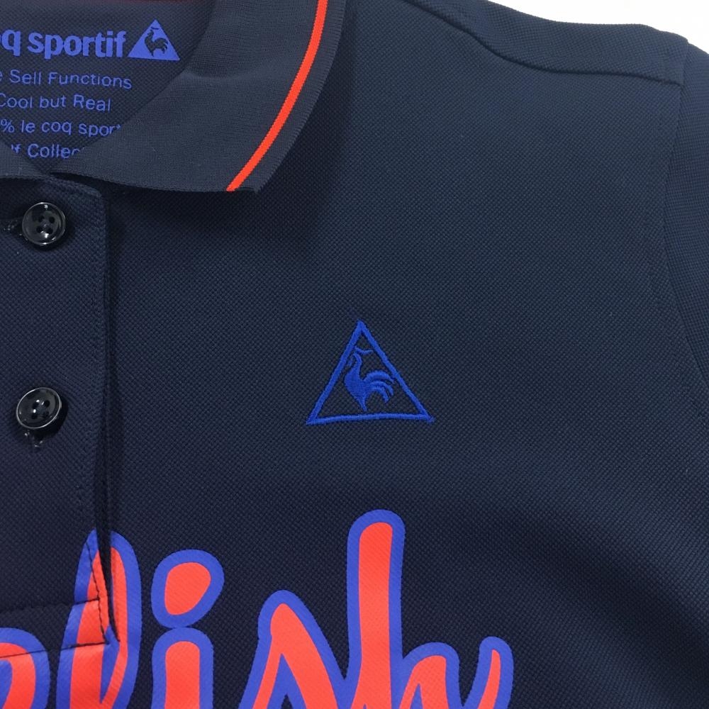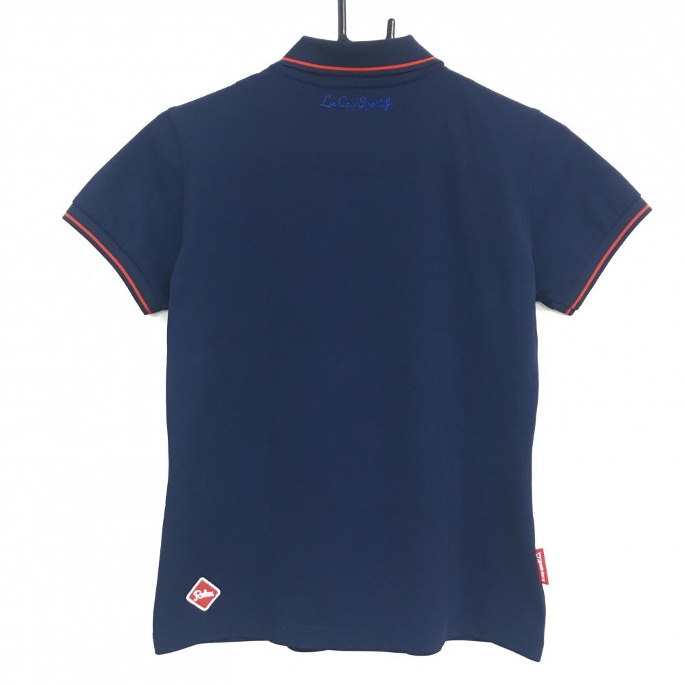 【美品】ルコックゴルフ 半袖ポロシャツ ネイビー×レッド フロント英字 ロゴ刺しゅう レディース M ゴルフウェア le coq sportif
