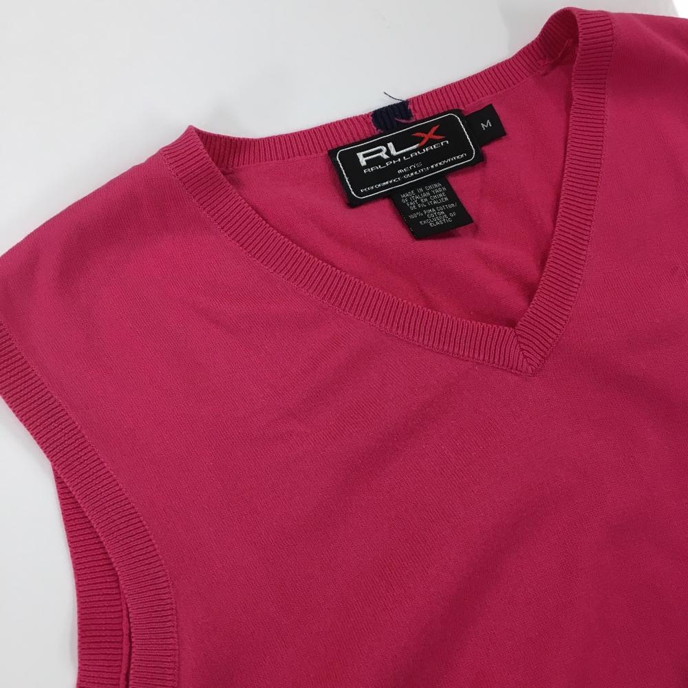 【美品】RLXラルフローレン ニットベスト ピンク 薄手 Vネック メンズ M ゴルフウェア Ralph Lauren