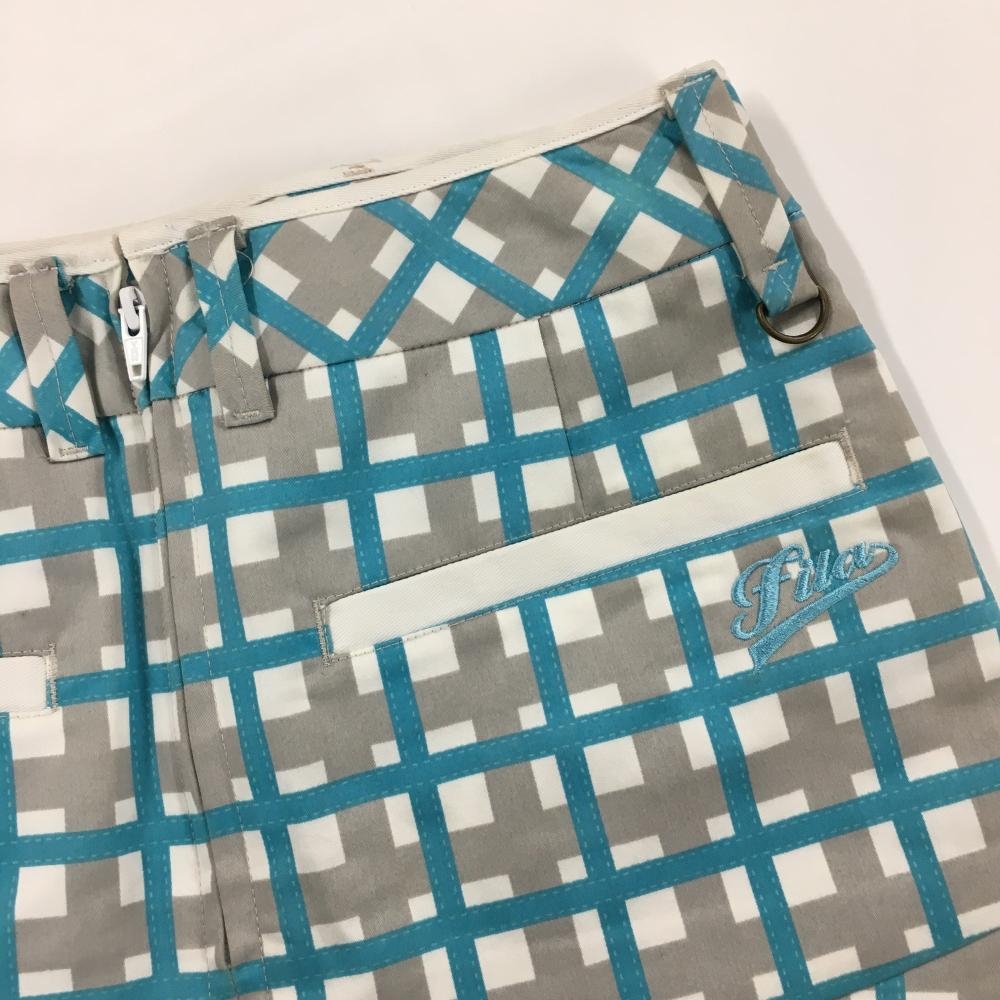 フィラゴルフ スカート 白×グリーンブルー×グレー 格子柄 ティー装着可 レディース L ゴルフウェア FILA GOLF