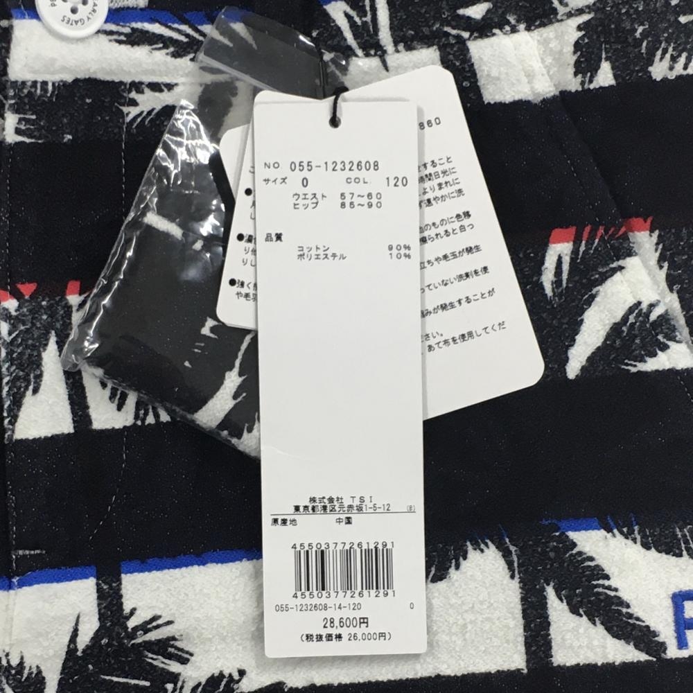【新品】パーリーゲイツ ショートパンツ 黒×白 ボーダー ヤシの木柄 薄手パイル風生地 レディース 0(S) ゴルフウェア PEARLY GATES