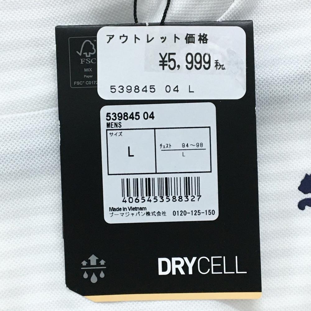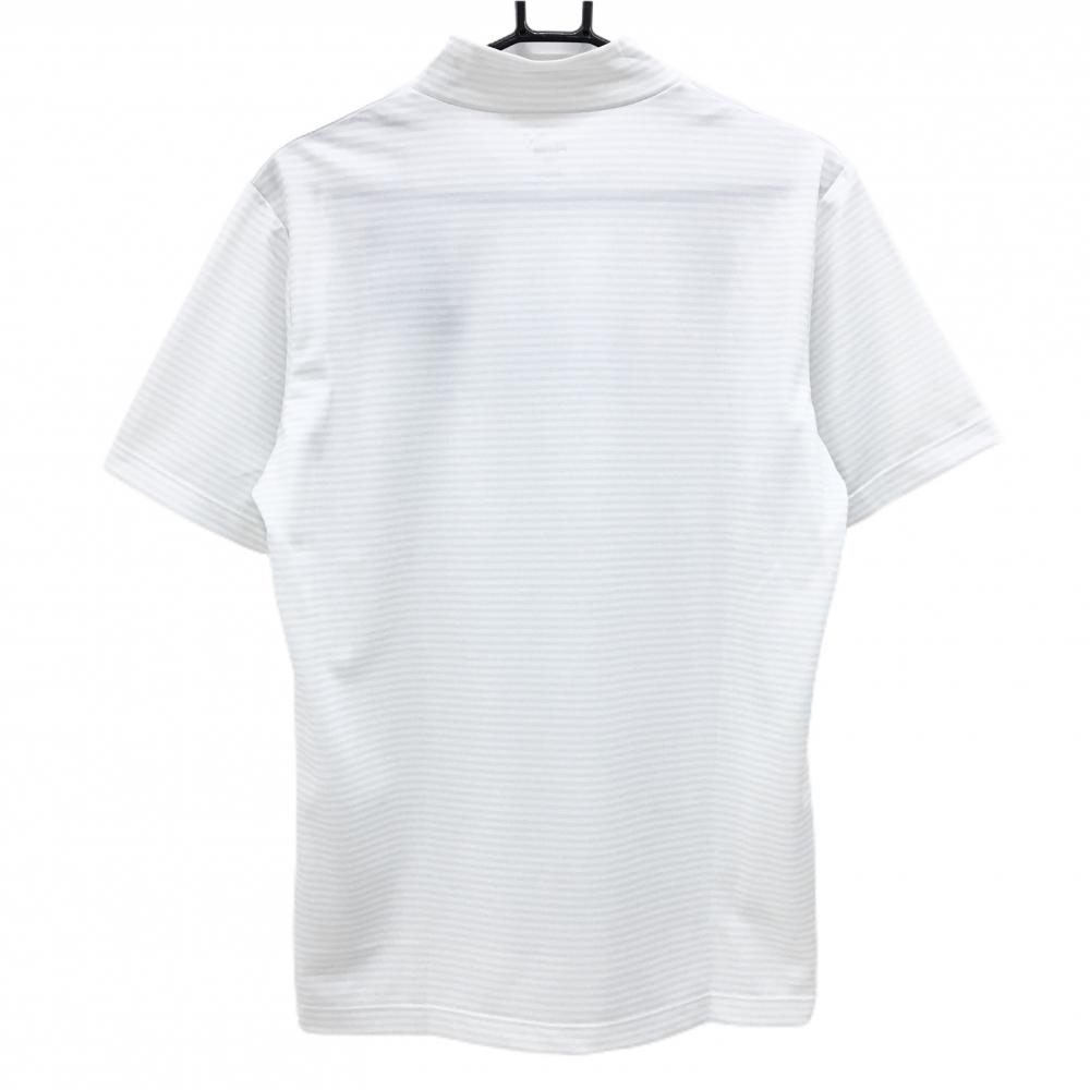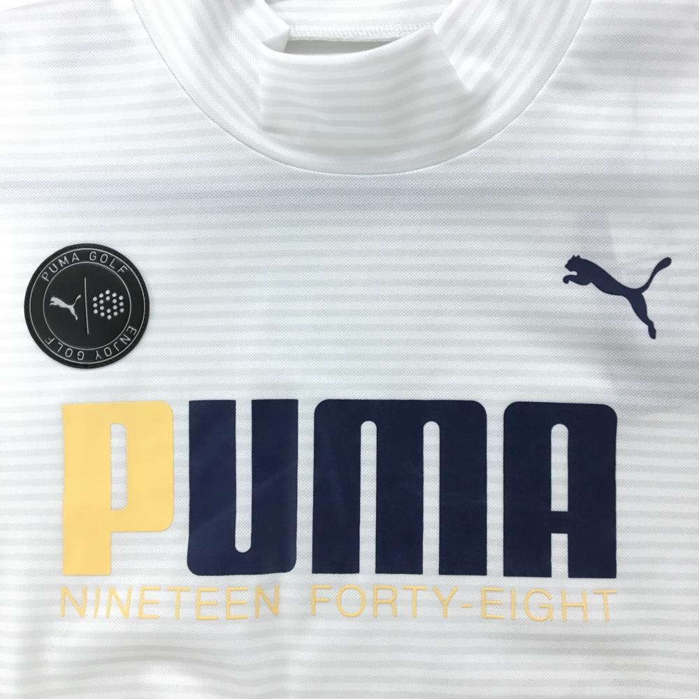 【新品】プーマ 半袖ハイネックシャツ 白×ライトグレー ボーダー DRYCELL メンズ L ゴルフウェア PUMA