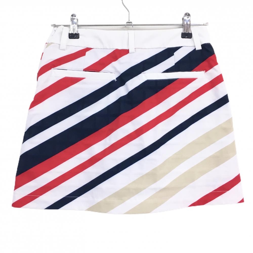 【美品】キャロウェイ スカート 白×ネイビー×レッド 斜めストライプ 内側インナーパンツ レディース M ゴルフウェア Callaway