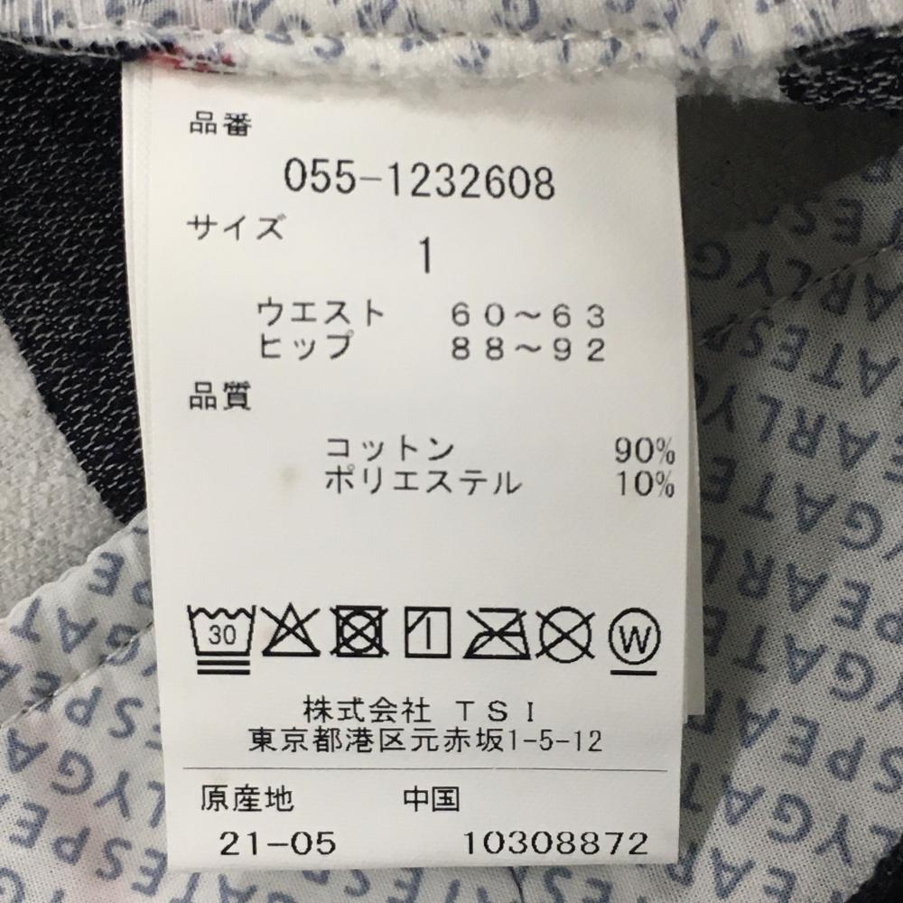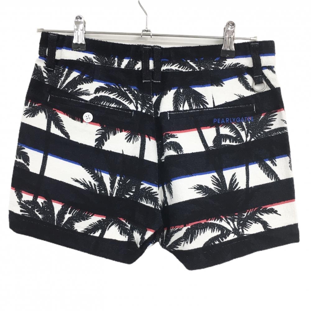 【新品】パーリーゲイツ ショートパンツ 黒×白 ボーダー ヤシの木柄 薄手パイル風生地 レディース 1(M) ゴルフウェア PEARLY GATES