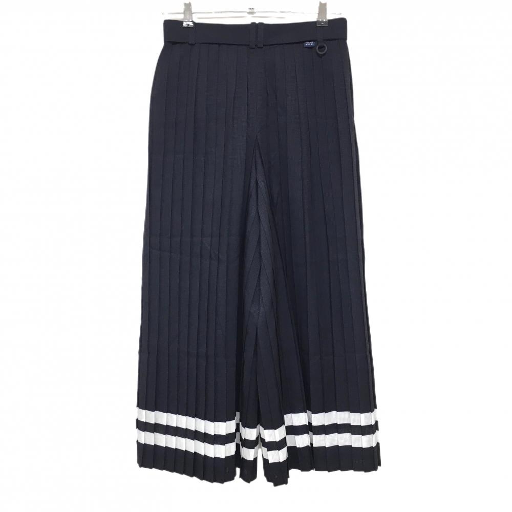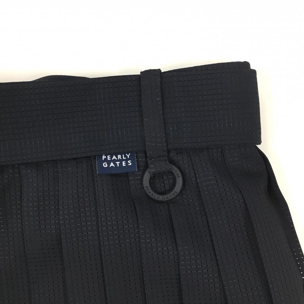 【新品】パーリーゲイツ プリーツワイドパンツ ネイビー×白 メッシュ生地 裏地付き 裾2ライン レディース 0(S) ゴルフウェア PEARLY GATES