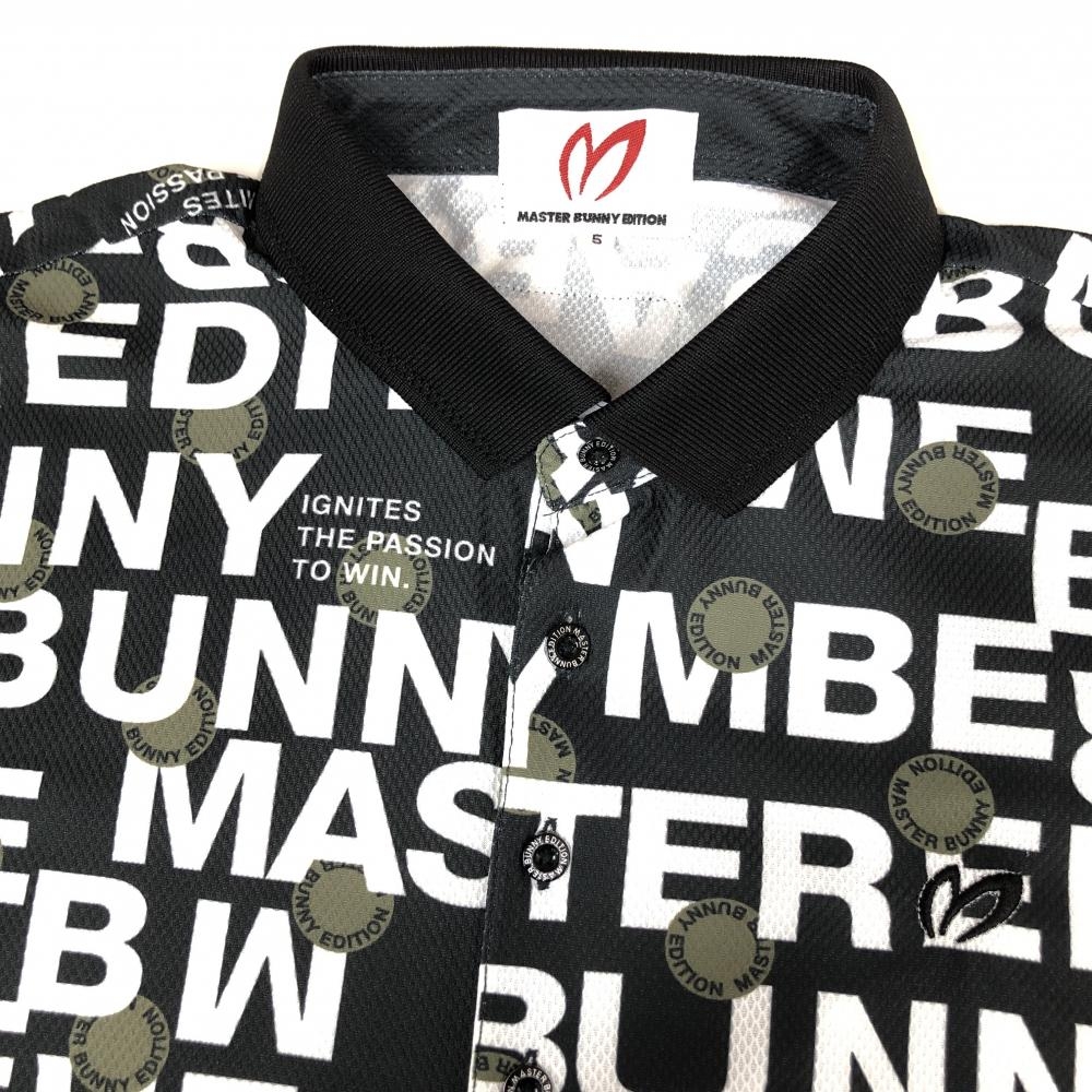 【美品】マスターバニー 半袖ポロシャツ 黒×白 ロゴ総柄 ドット メンズ 5(L) ゴルフウェア 2024年モデル MASTER BUNNY EDITION