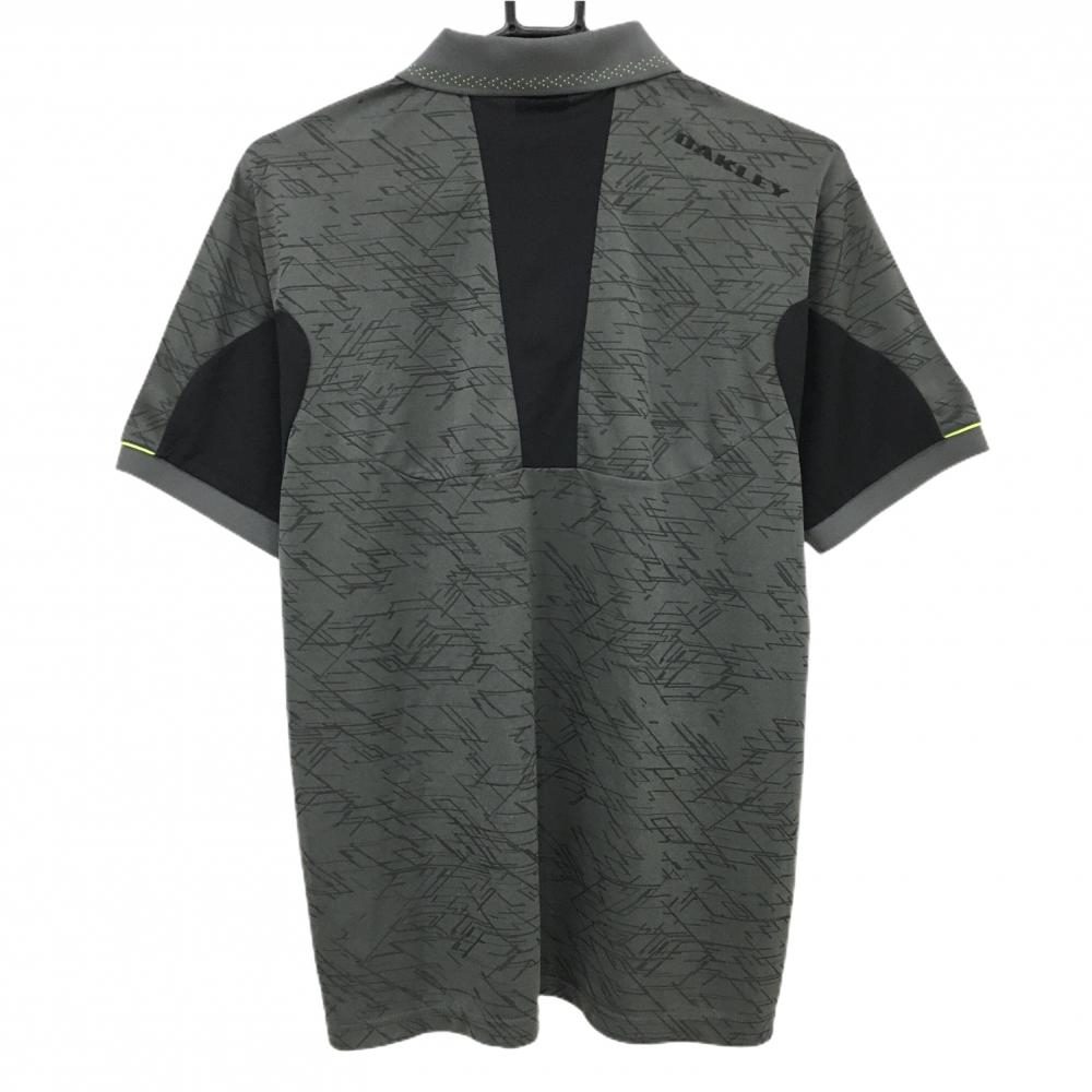 【超美品】オークリー 半袖ポロシャツ グレー×黒 総柄透かし模様 袖下切替 メンズ M ゴルフウェア Oakley