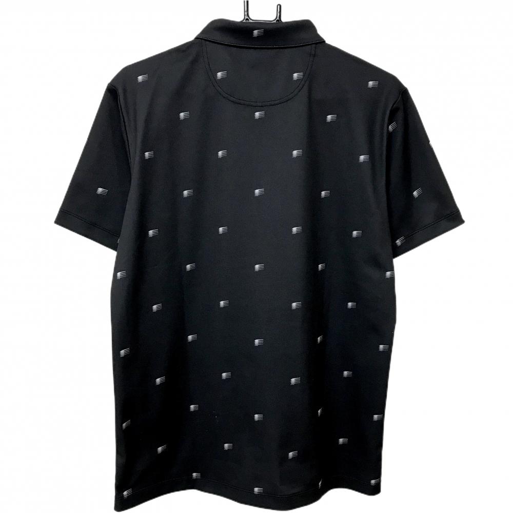 【美品】プーマ 半袖ポロシャツ 黒×白 総柄 ボタンダウン ゴールドロゴ メンズ L ゴルフウェア PUMA