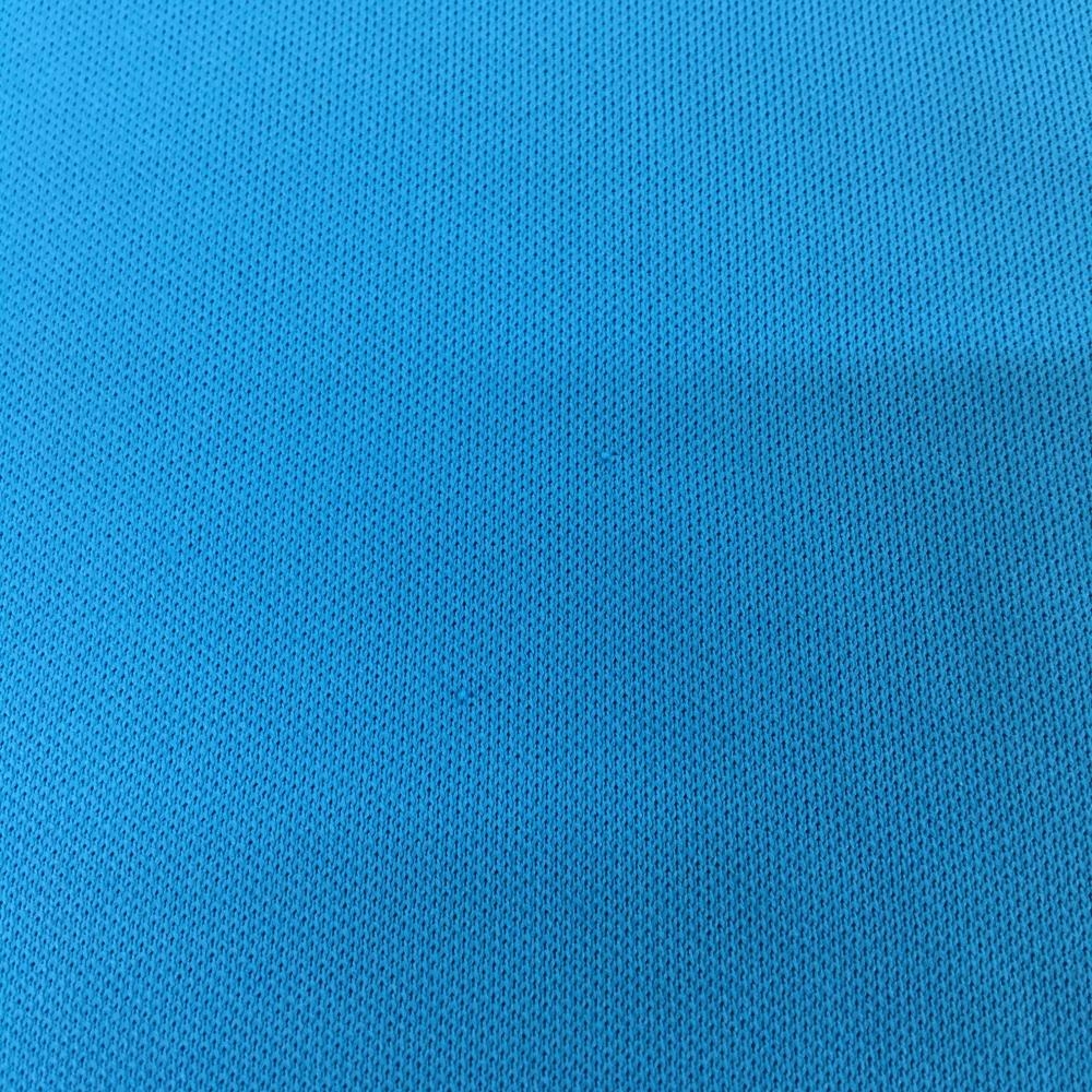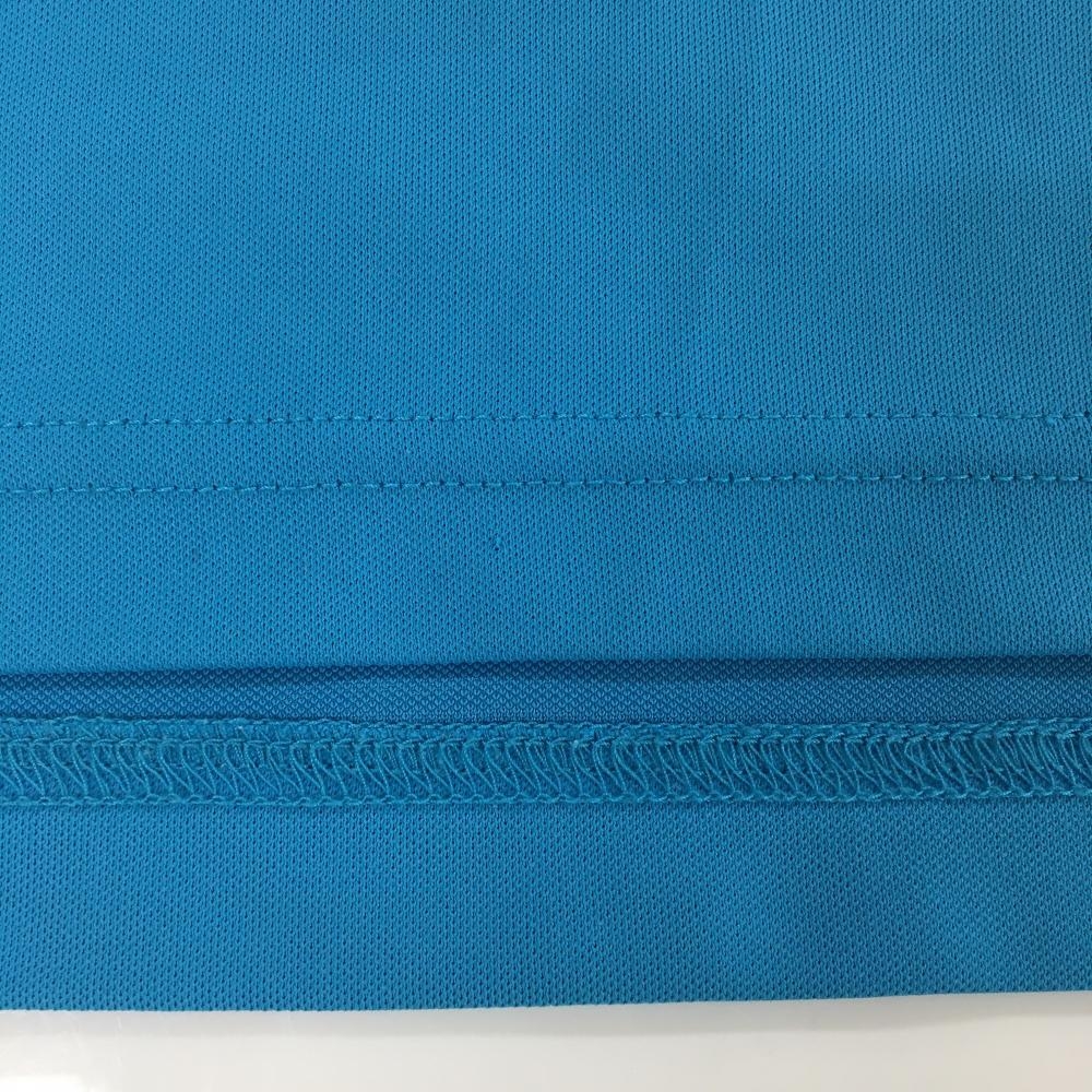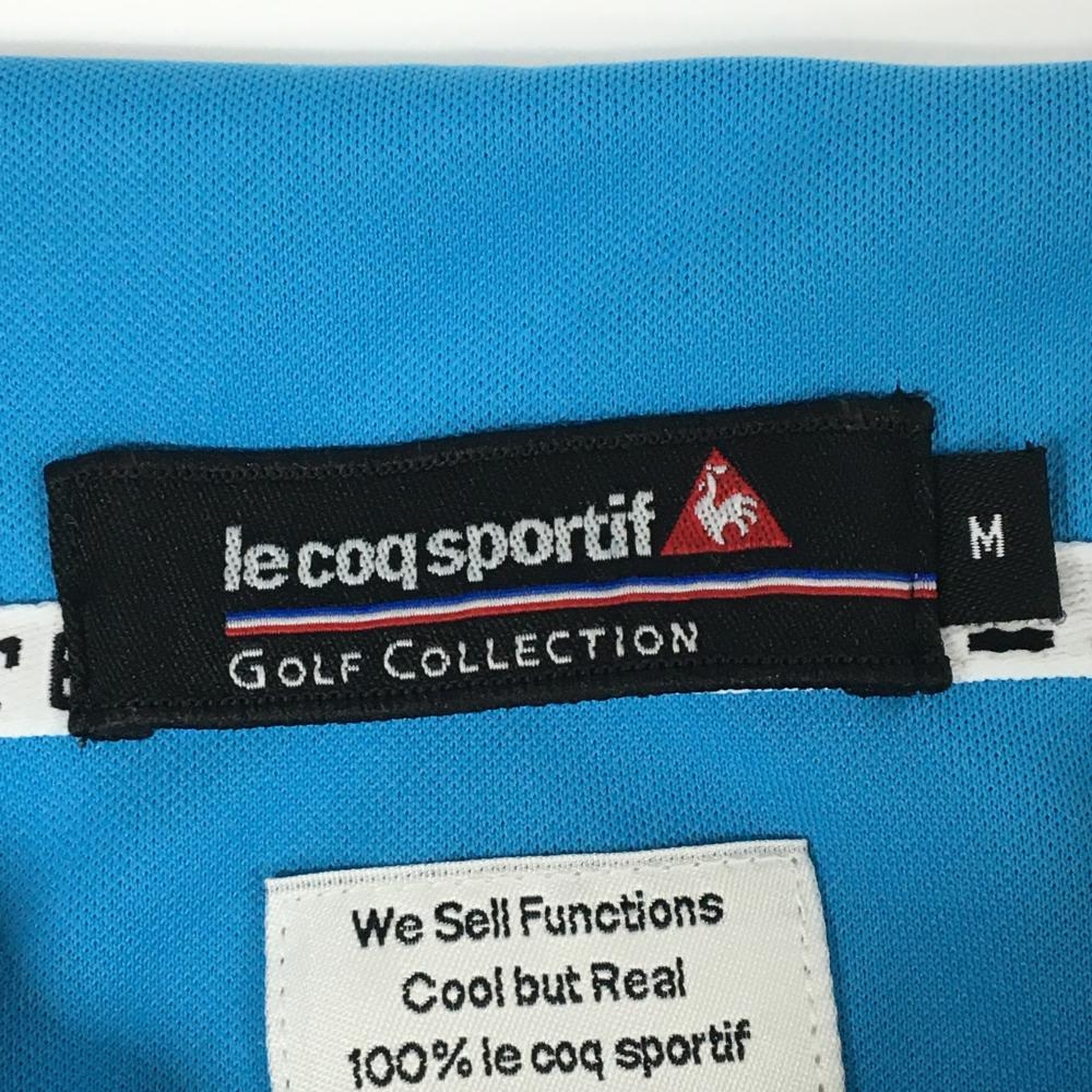 ルコックゴルフ 半袖ポロシャツ ライトブルー×オレンジ 袖ロゴ総柄 ハーフジップ メンズ M ゴルフウェア le coq sportif