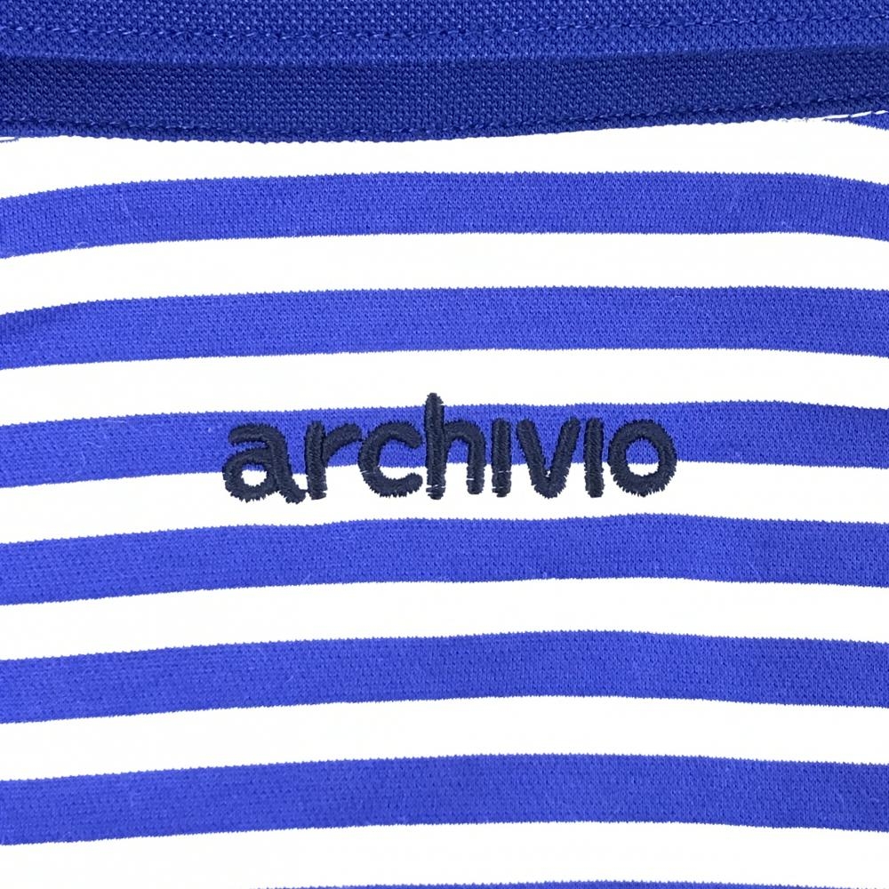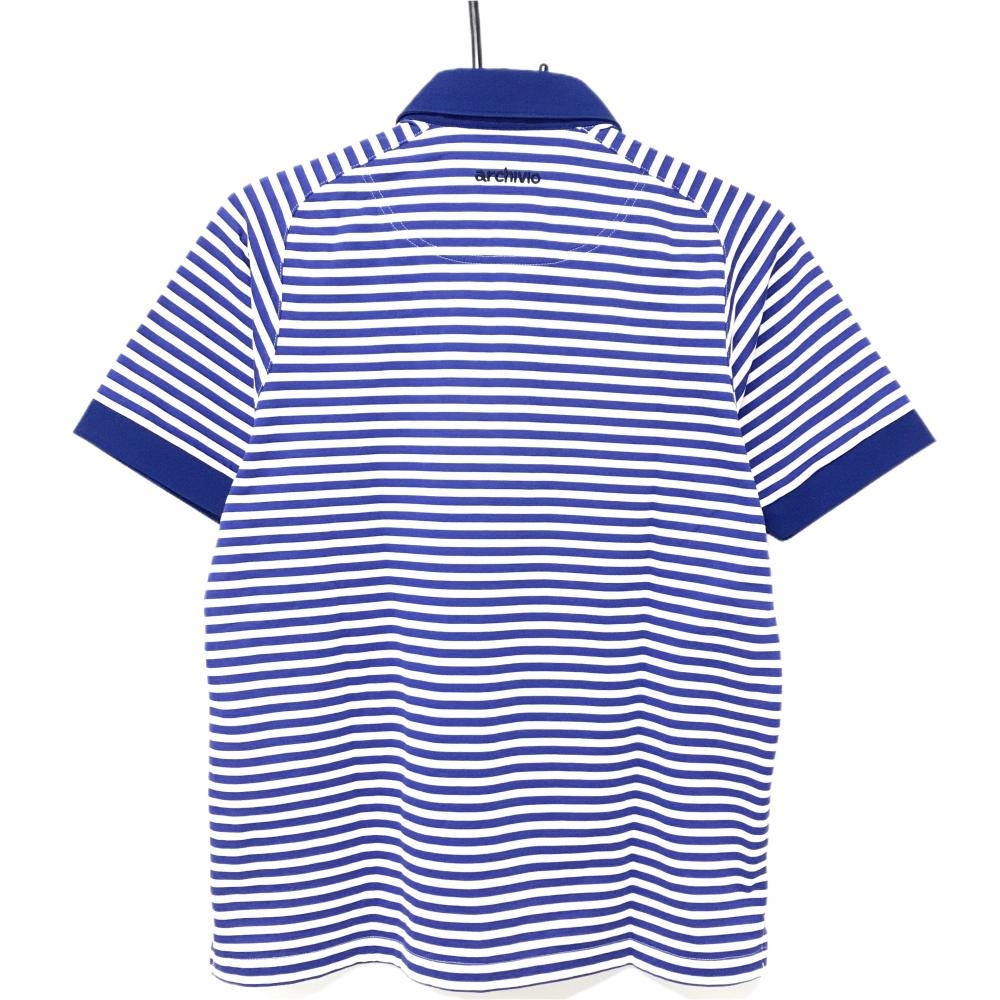 【美品】アルチビオ 半袖ポロシャツ 白×ブルー 袖・背面ボーダー ワッペン メンズ 46(M) ゴルフウェア archivio