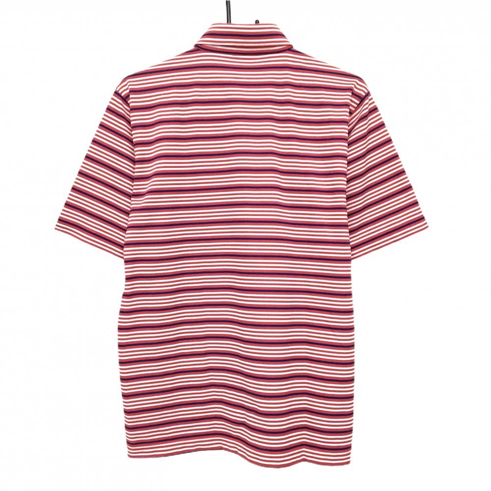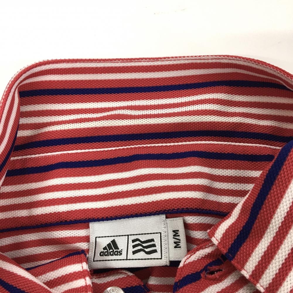 【美品】アディダス 半袖ポロシャツ レッド×白×ネイビー ボーダー ボタンダウン メンズ M/M ゴルフウェア adidas