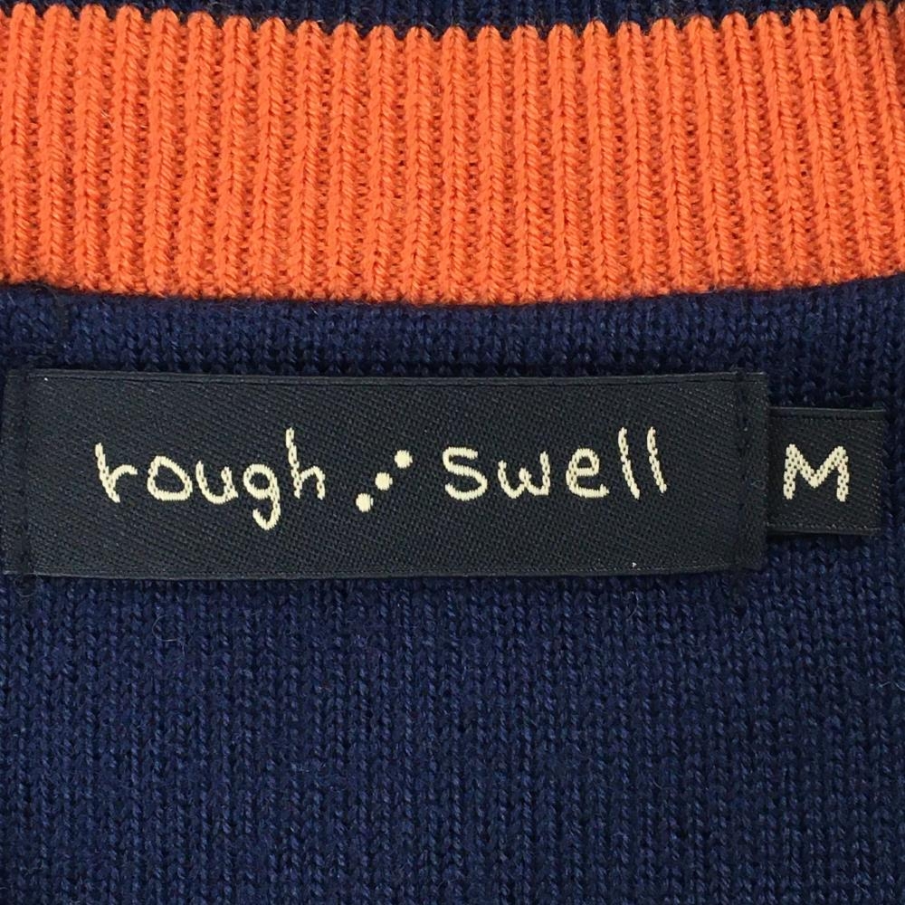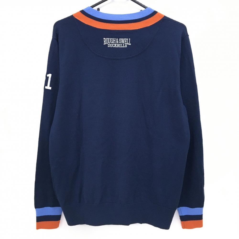 ラフアンドスウェル セーター ネイビー×オレンジ ネック袖口ライン Vネック ウール混 ニット メンズ M ゴルフウェア rough&swell