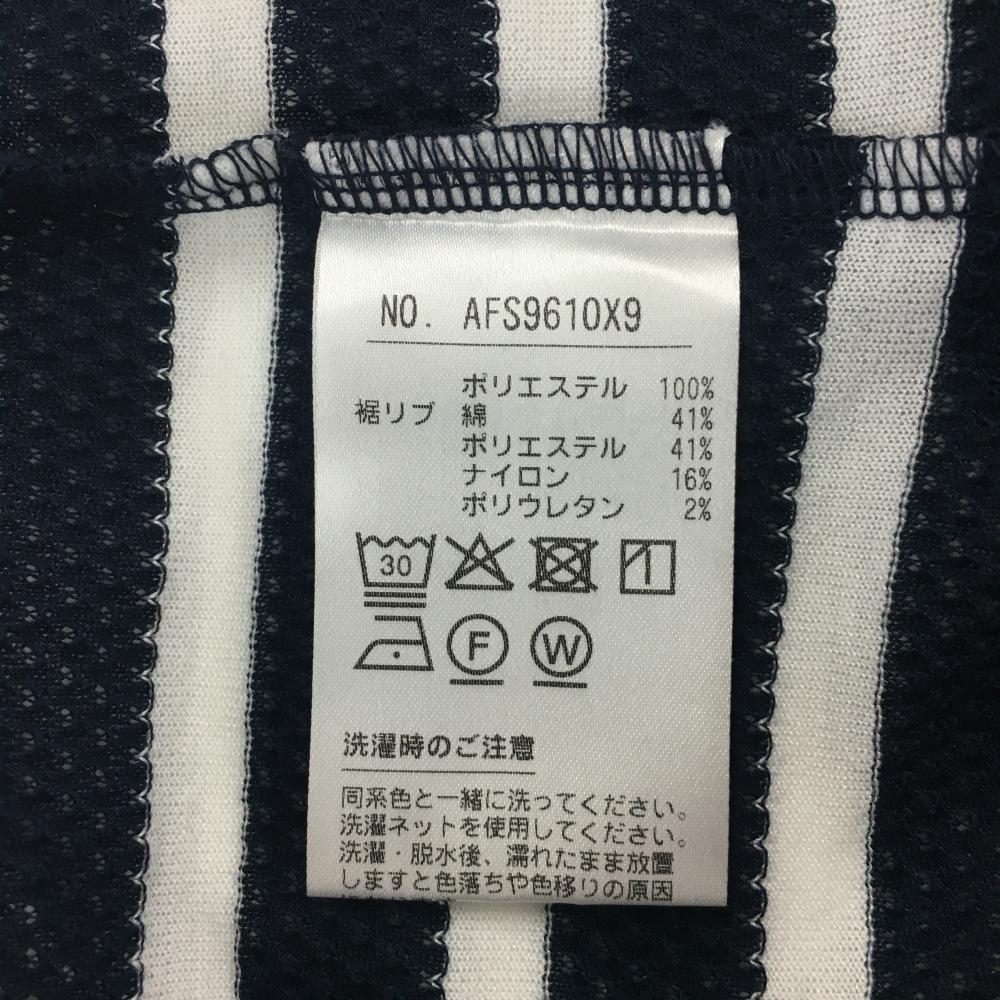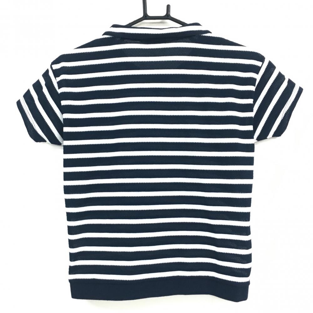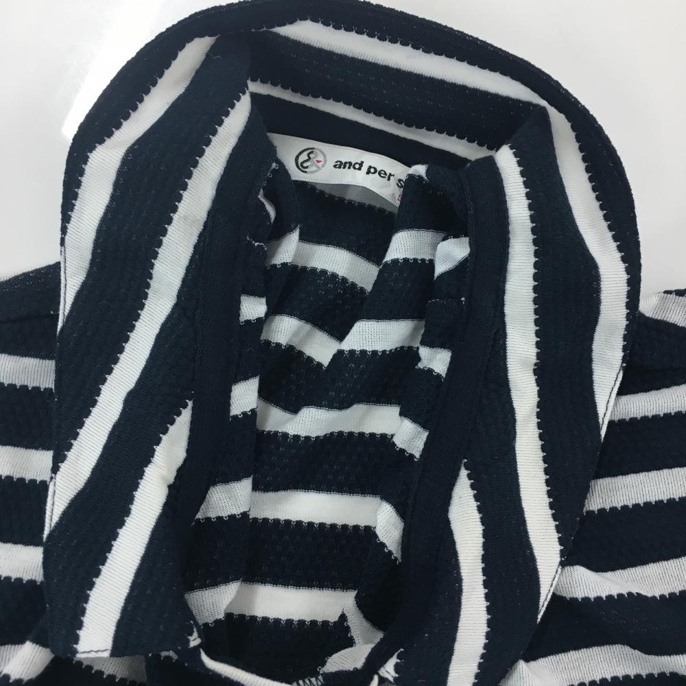 【美品】アンパスィ 襟付Tシャツ ネイビー×白 ボーダー 袖ロゴ レディース S ゴルフウェア and per se