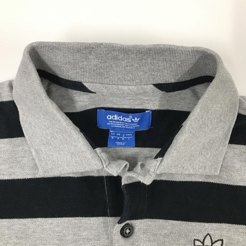 アディダス 半袖ポロシャツ グレー×黒 ボーダー レディース S ゴルフウェア adidas