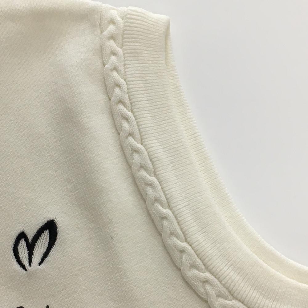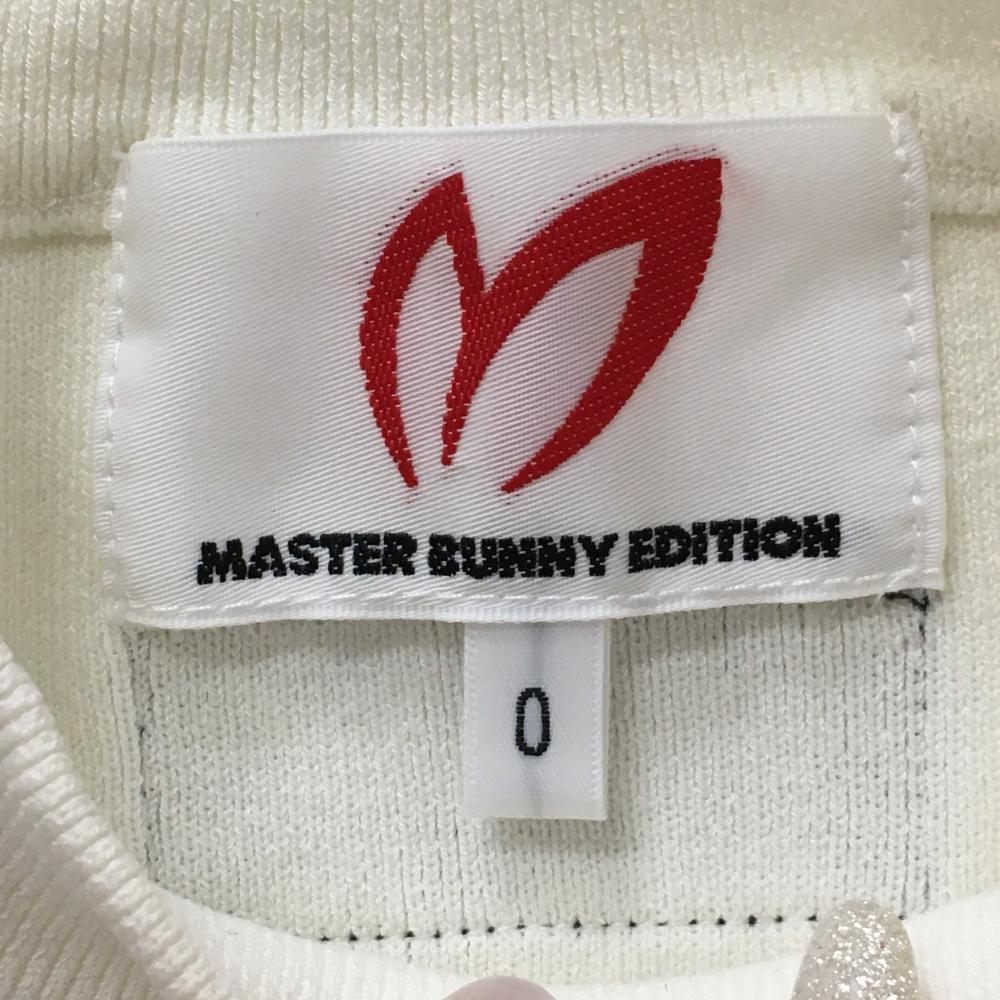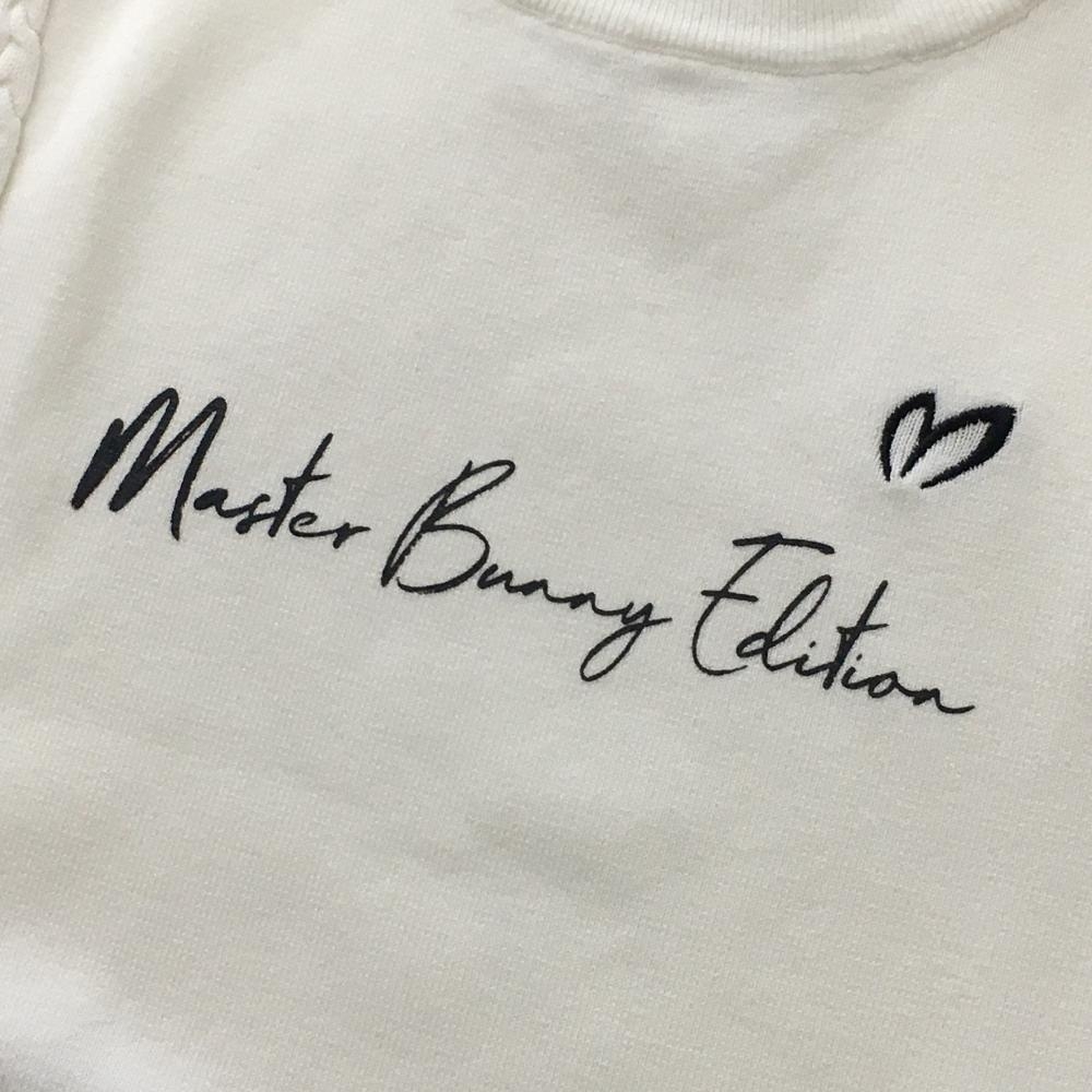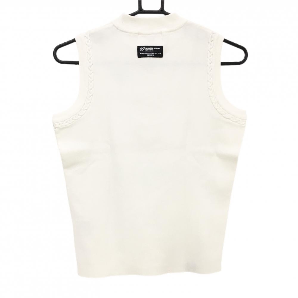 【超美品】マスターバニー ニットベスト 白×黒 フロントロゴ 袖口ケーブル編み レディース 0(S) ゴルフウェア MASTER BUNNY EDITION
