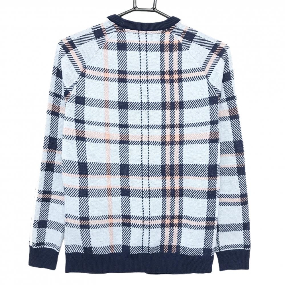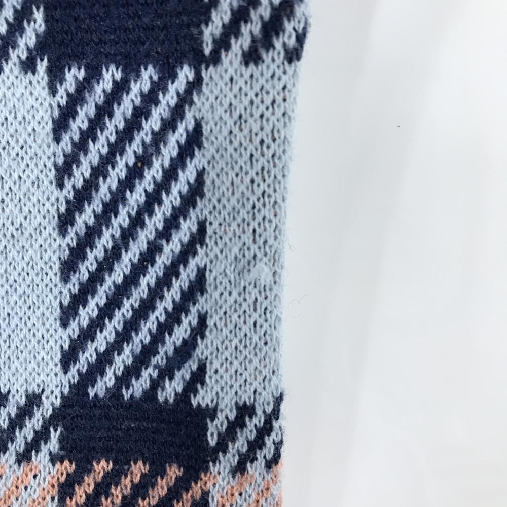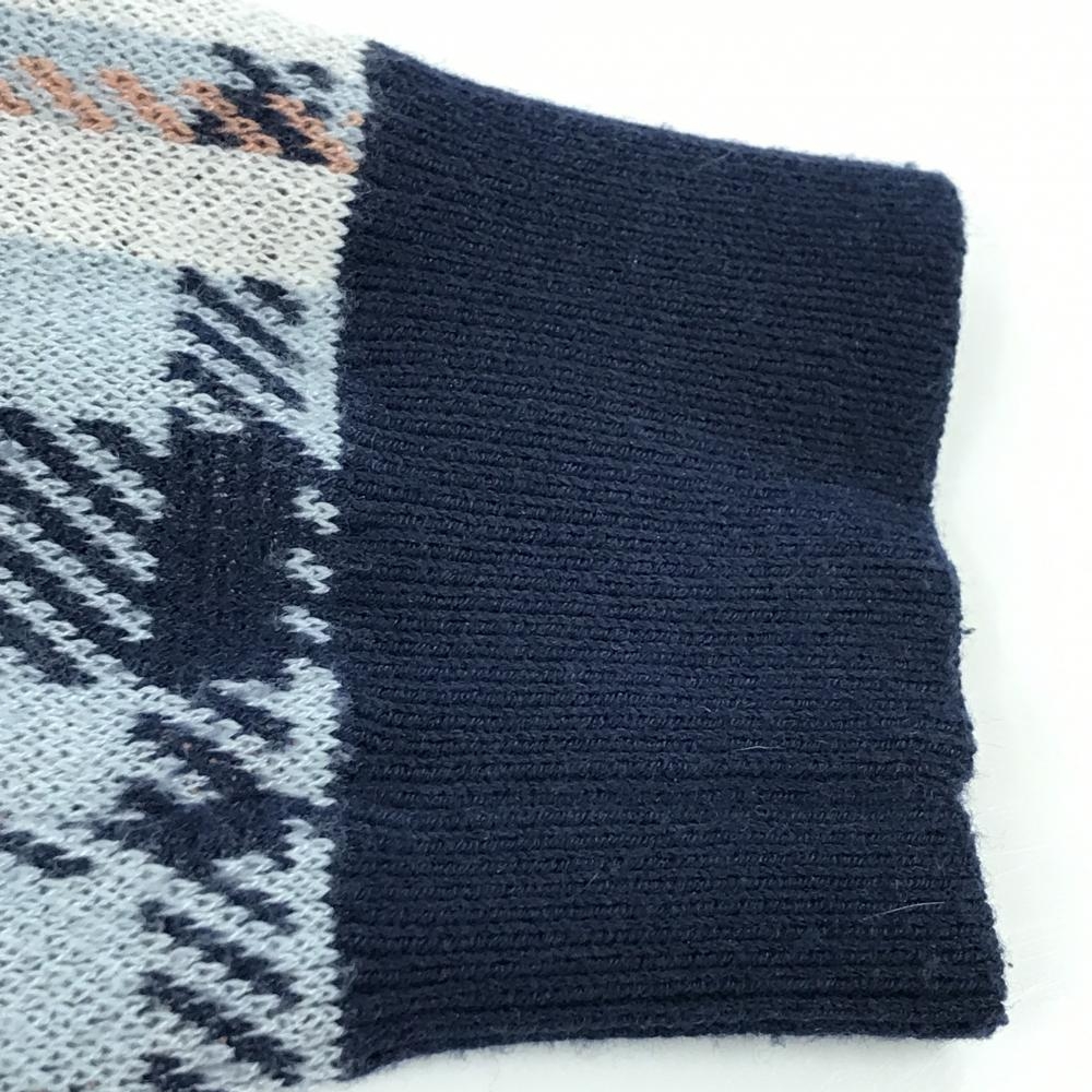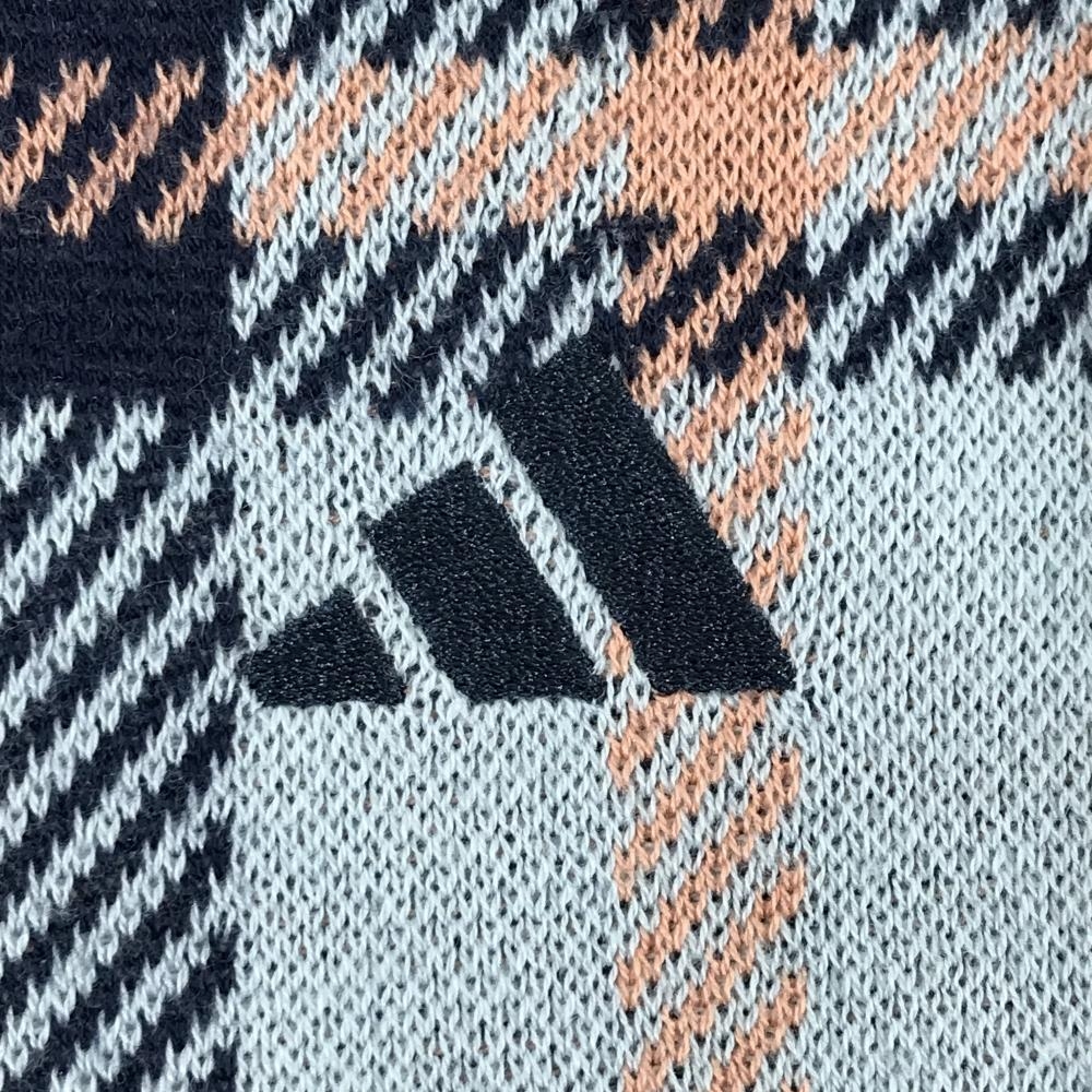 アディダス セーター ネイビー×ライトブルー チェック ニット レディース L ゴルフウェア adidas
